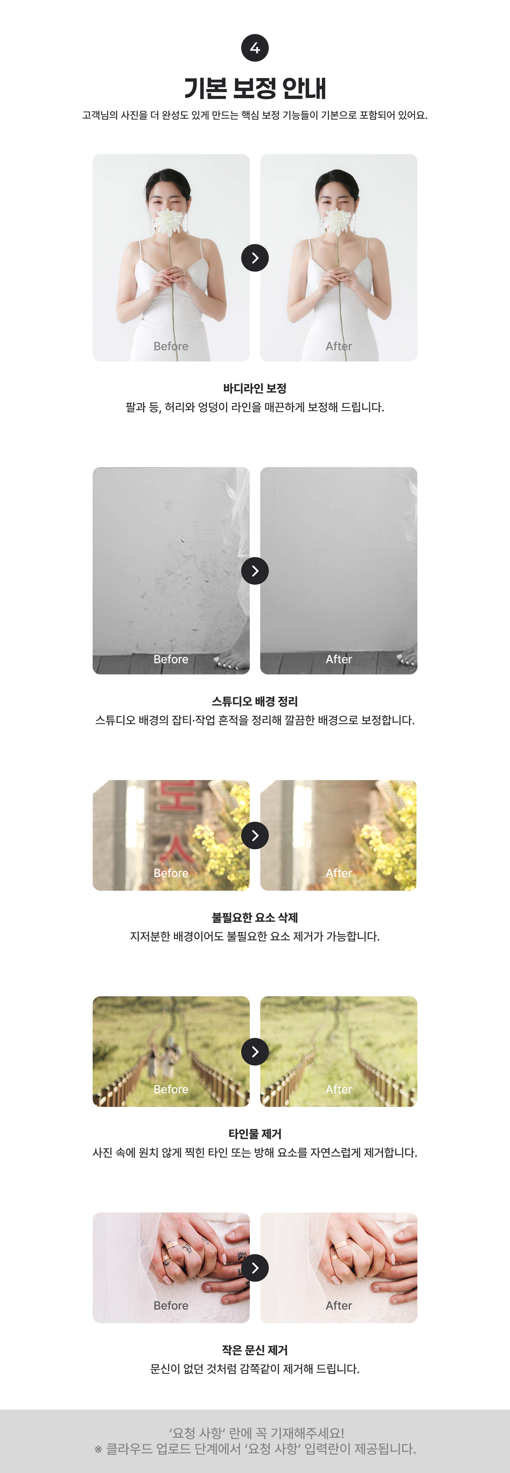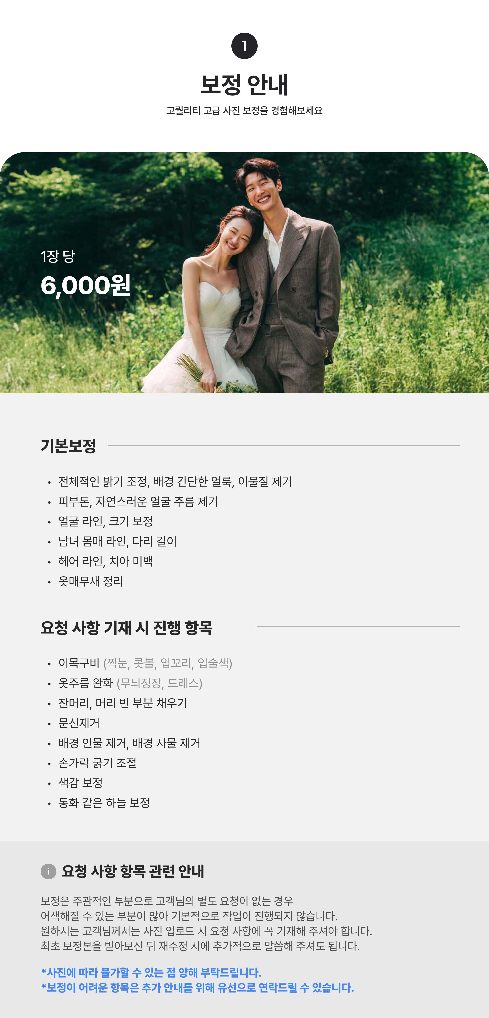 6. 옷 주름 보정의 경우, 확대 시 무늬·재질이 보이는 의상은 보정이 불가합니다.