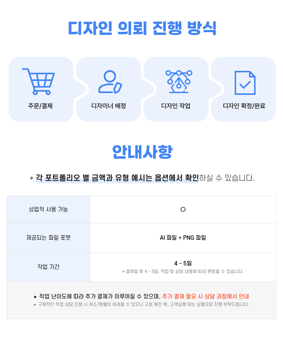 ⑤ 긴급/당일 디자인 작업은 원칙적으로 불가하며, 예외적으로 긴급/당일 작업으로 진행되는 경우 추가요금이 발생됩니다.
