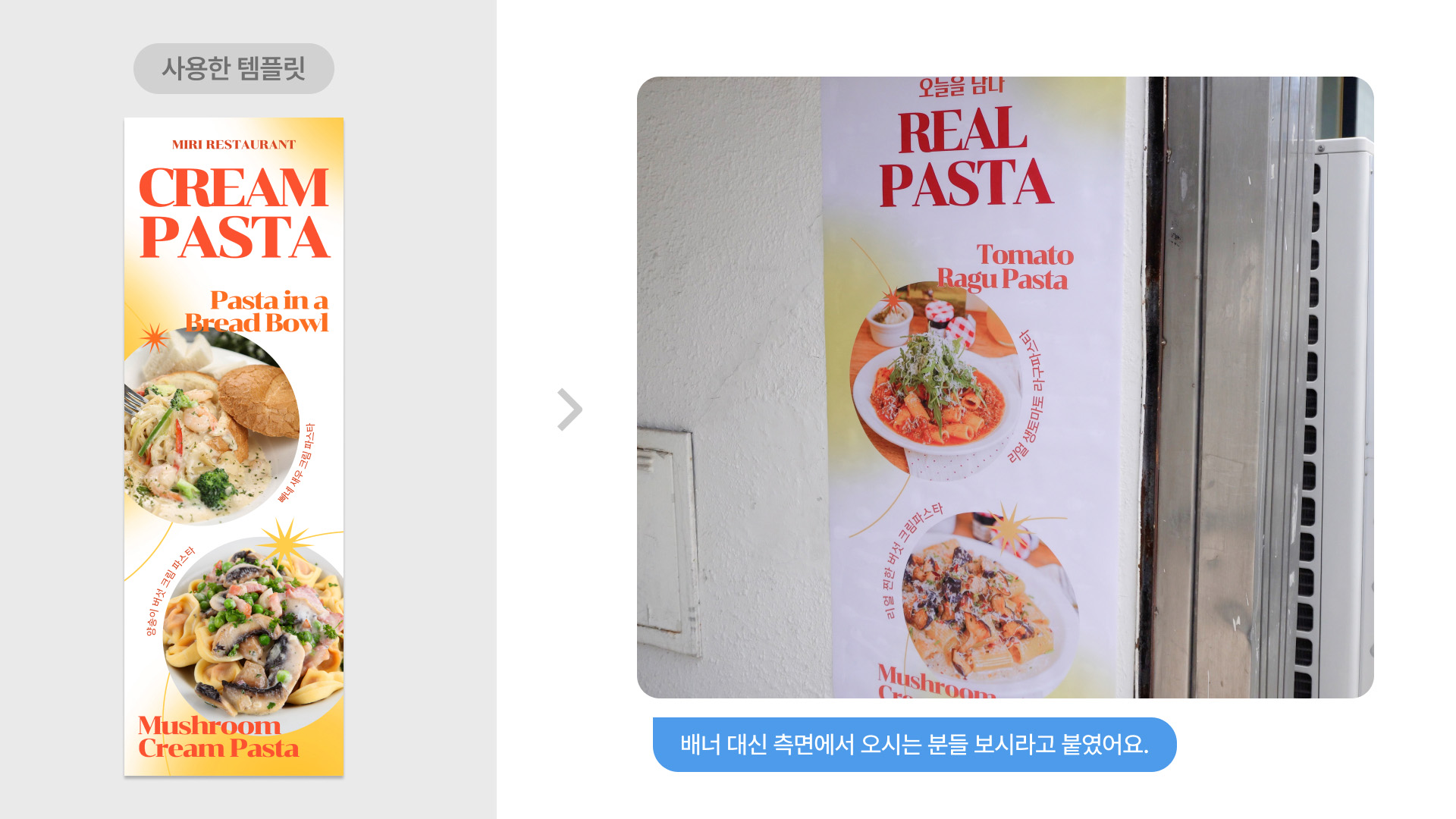 지나다니는 손님들이 보실 수 있는 포스터, 배너, 쿠폰 같은 홍보물이 필요했어요.