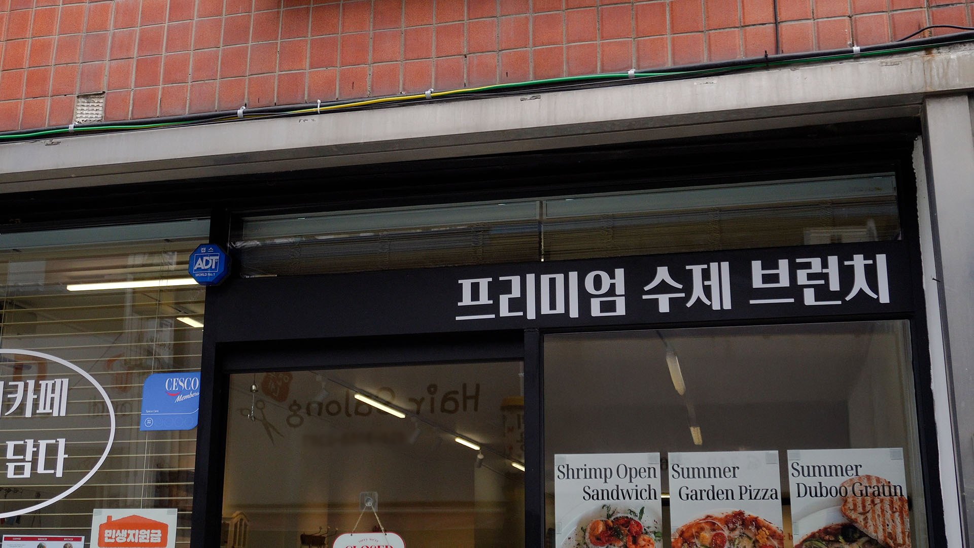 너무 크면 혼자 하기 어려워요. 그래서 위에 붙인 스티커(프리미엄 수제 브런치)는 A4 용지에 두 글자씩 만들고 나눠서 붙였어요.
