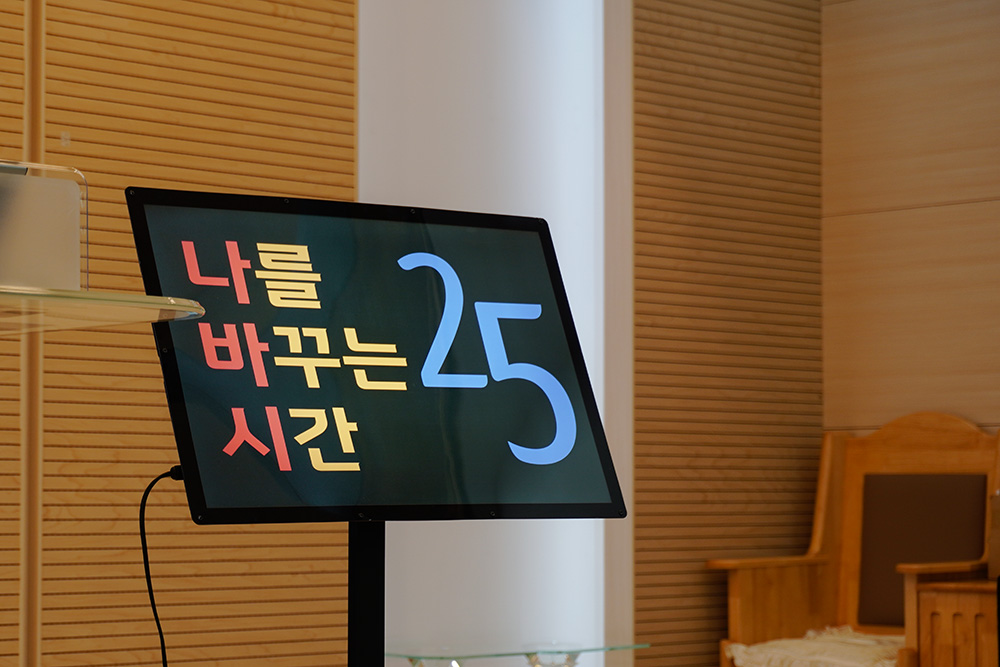 그러면 완전히 교회는 재단을 바라볼 때 크리스마스 분위기가 나겠죠. 그다음에 교회 곳곳에 크리스마스 관련된 실사 부착형 포스터나 붙일 수 있는 건 붙이고 그다음에 저 스탠드형 LED도 크리스마스 관련된 걸로 바꿔 놓으려고 해요.