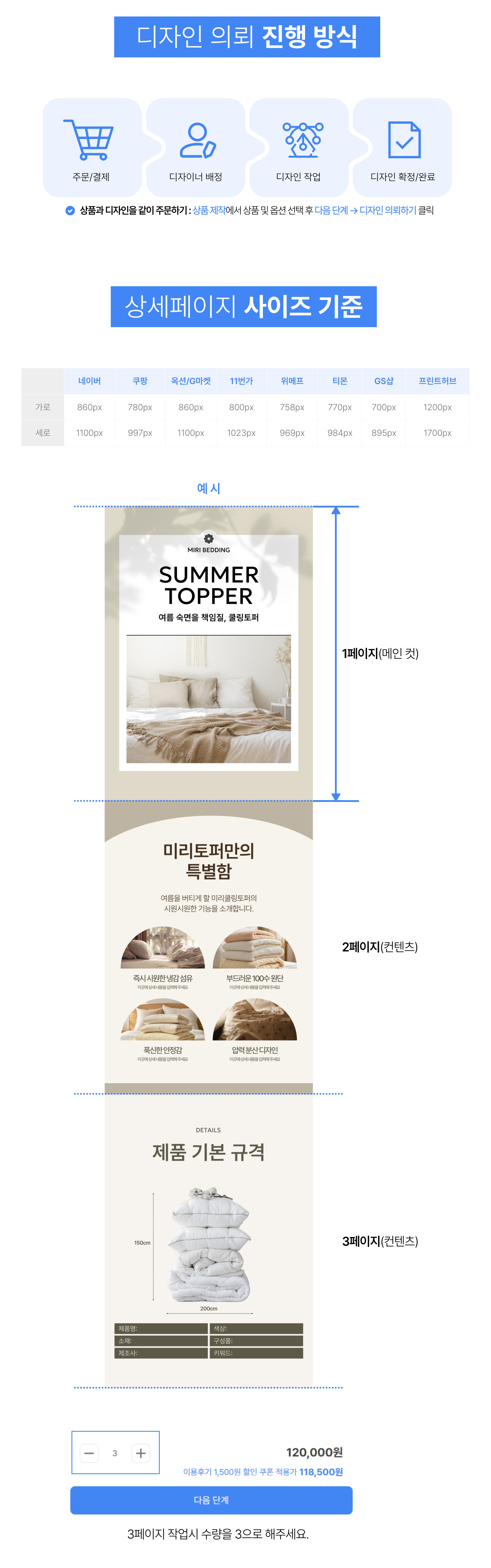① 상기 결제금액은 기본요금 입니다. 디자인의 구성방식, 양, 사이즈에 따라 추가요금이 발생될 수 있습니다.