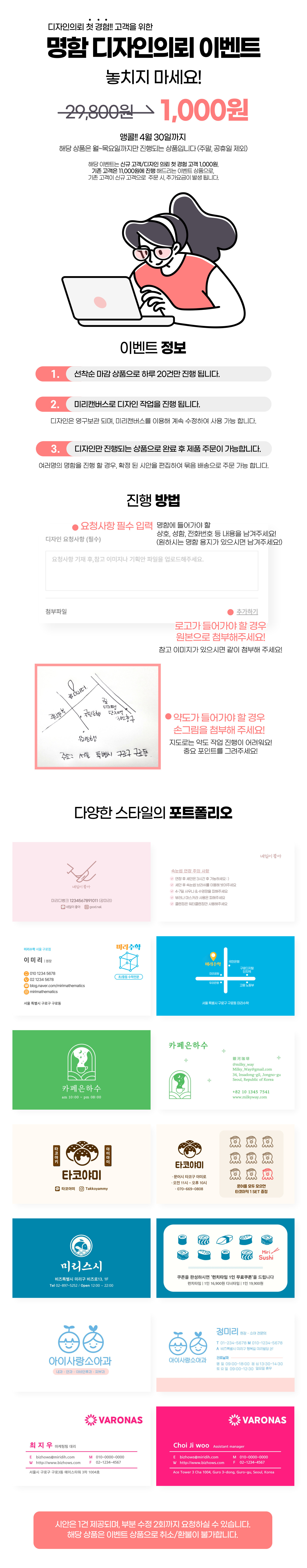 - 디자이너는 디자인진행까지만 안내 가능합니다. 제작 문의는 대표고객센터로 부탁드립니다.
