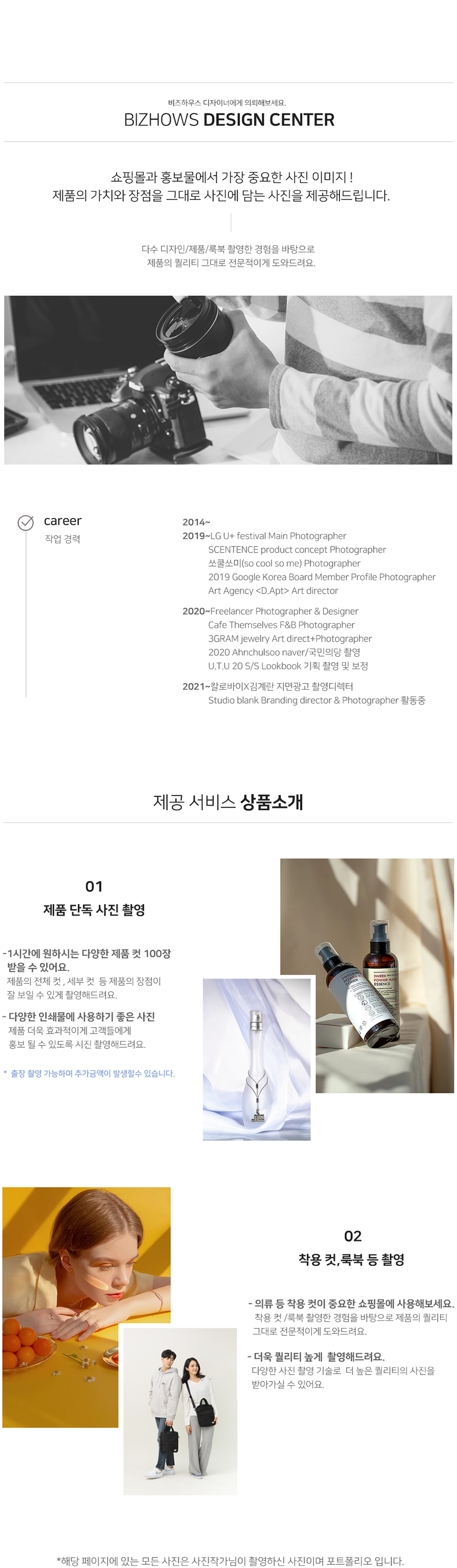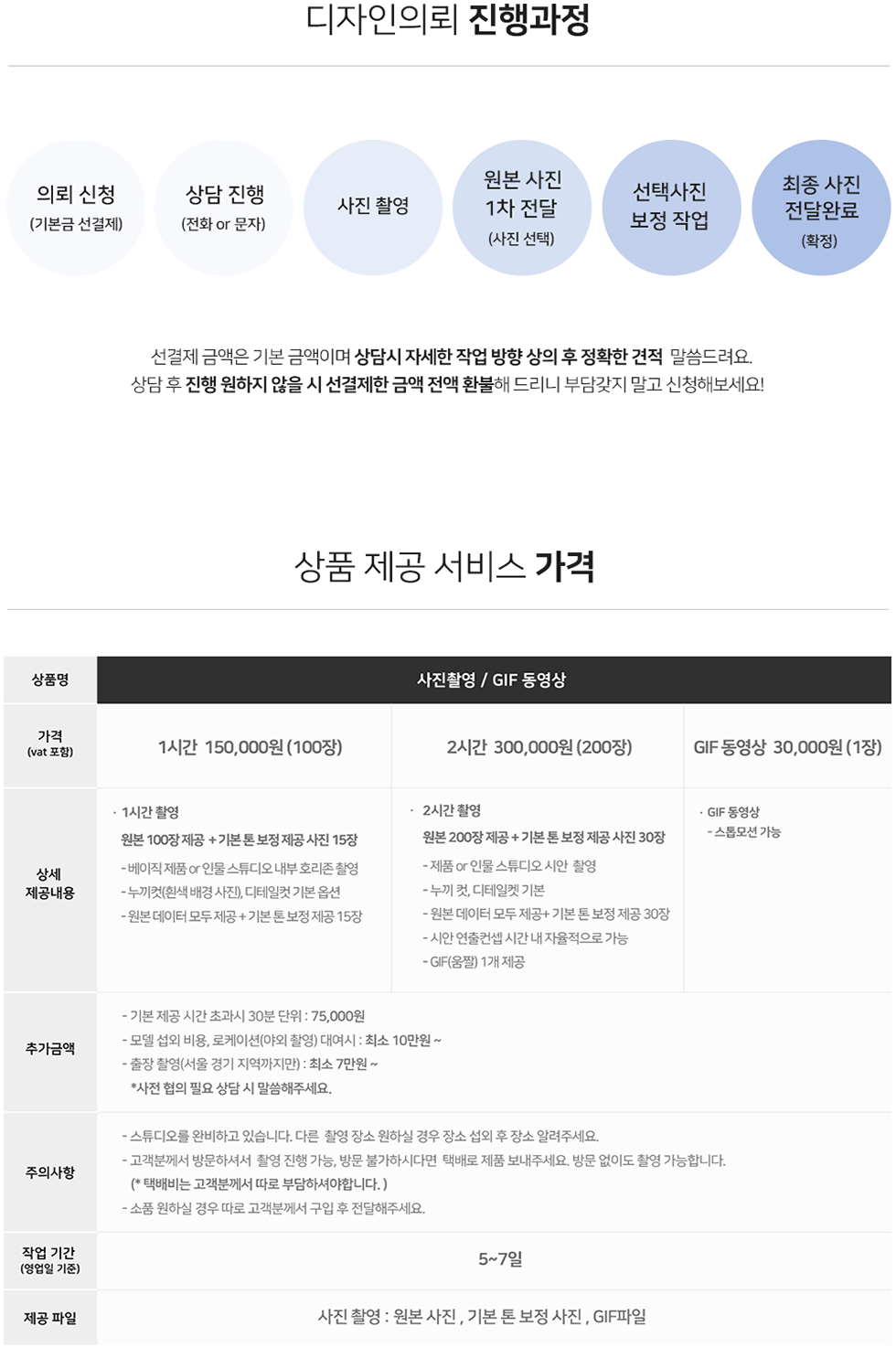 • 사진촬영의 경우 수정시 전체 재촬영으로 진행되어 수정요청이 제공되지 않습니다.