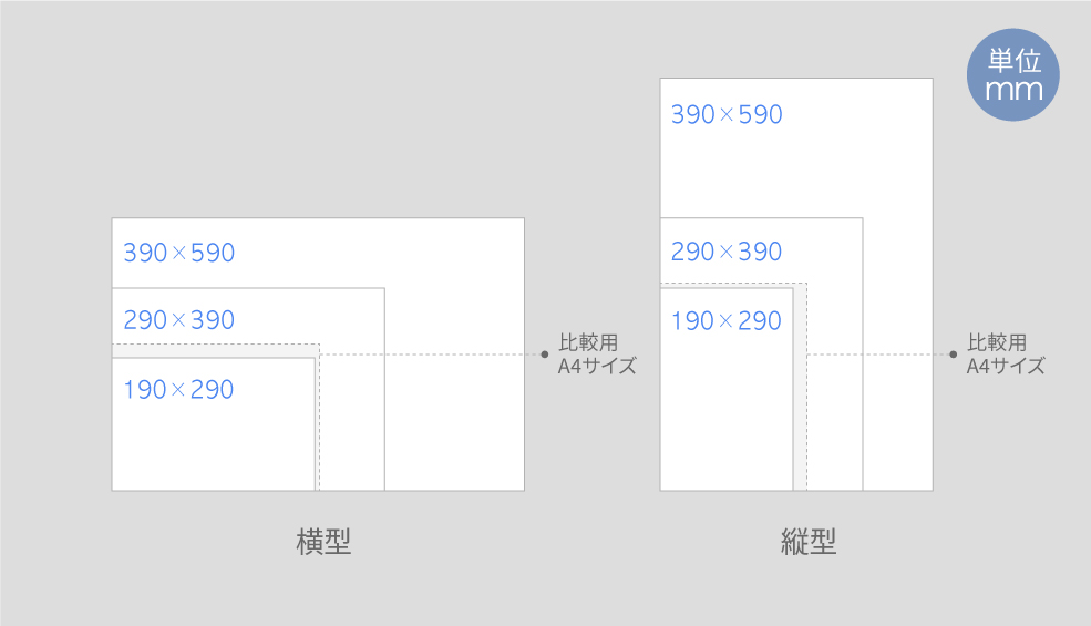 ※ 実際の製作物は、裁断の工程上1~2mmのサイズの誤差が生じることがあります。
