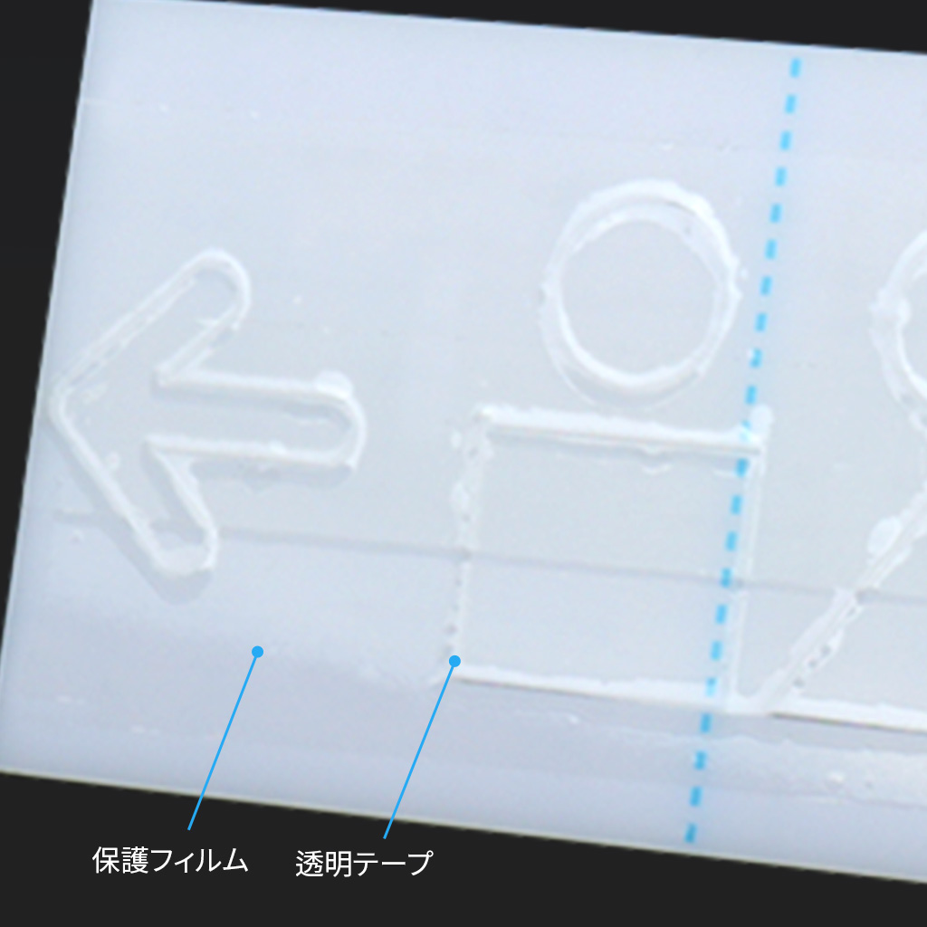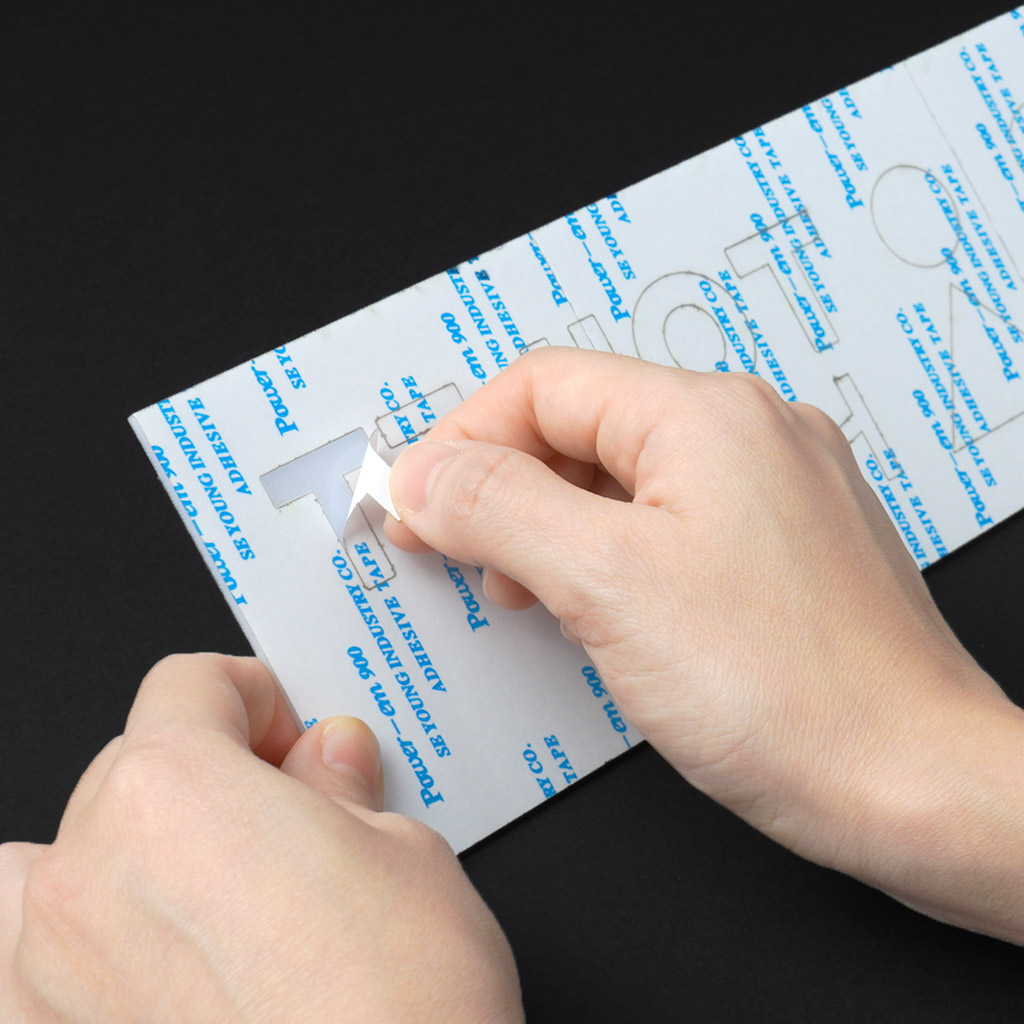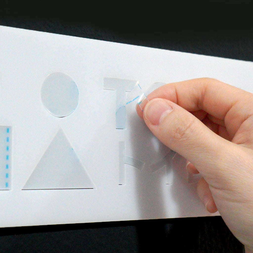 ※ 文字が完全にくっ付いていない場合は、アクリルフレームを貼り直した後、文字の部分をしっかり押さえてください。