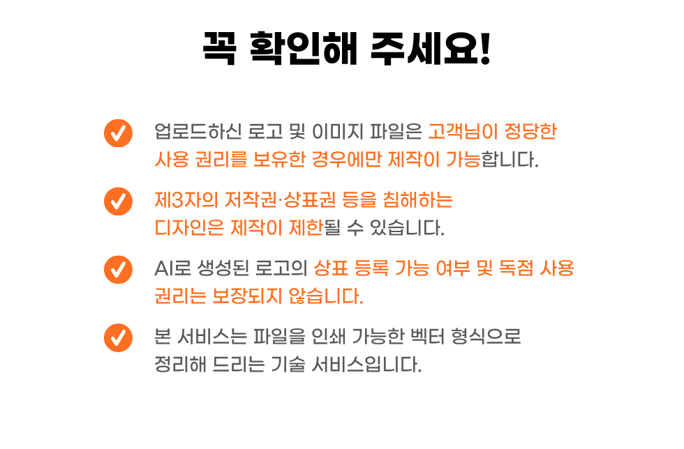 • 업로드하신 로고 및 이미지 파일은 고객님이 정당한 사용 권리를 보유한 경우에만 제작이 가능합니다.