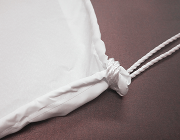 대형 현수막은 두 장 이상의 원단을 자연스럽게 미싱 연결하여 제작되며, 원단이 무게를 지탱하게끔 현수막의 사방을 줄미싱 처리합니다.