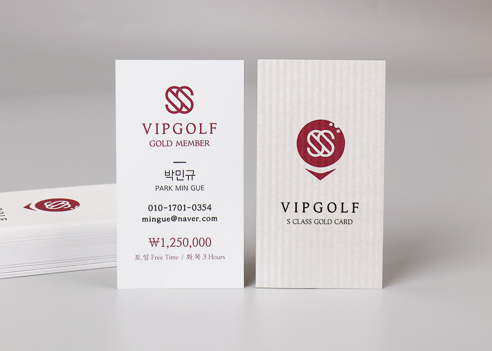 형압은 명함의 앞면에서 인쇄면을 따라 양각효과를 만들어내고, 뒷면에는 음영의 변화로 은은한 모양을 만들어냅니다.