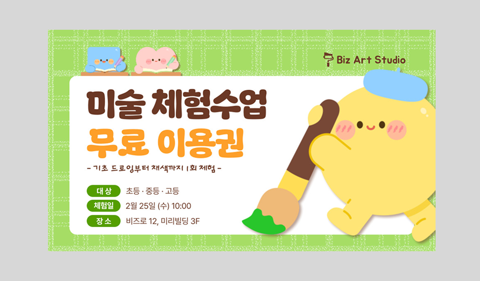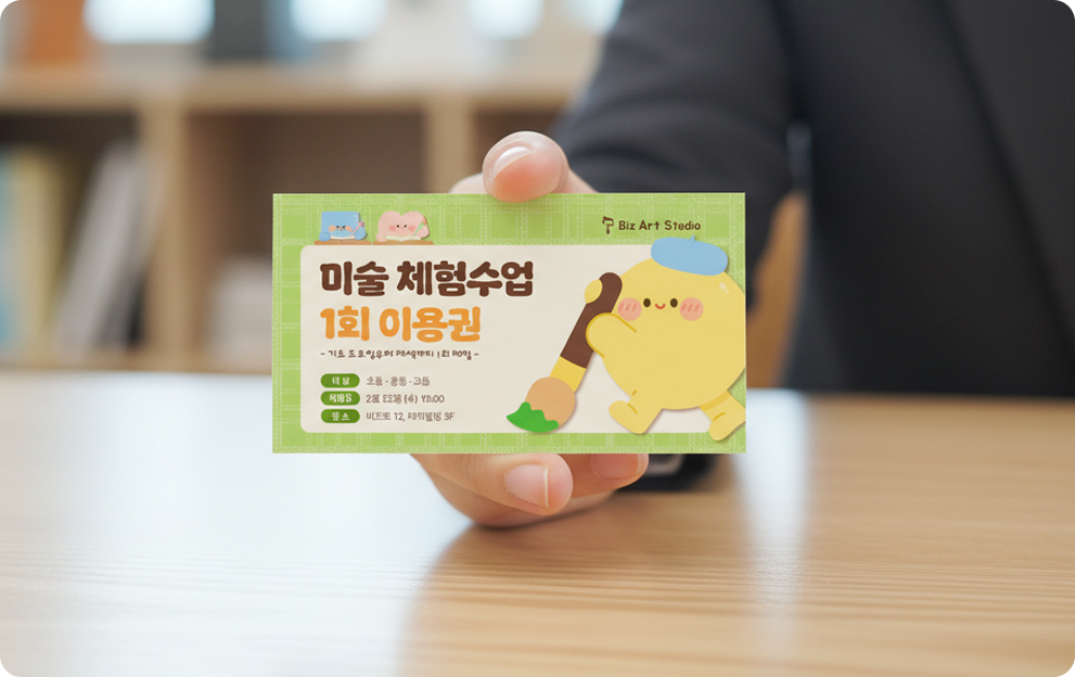 가장 직관적으로 혜택이 담긴 체험권 명함은 학부모님의