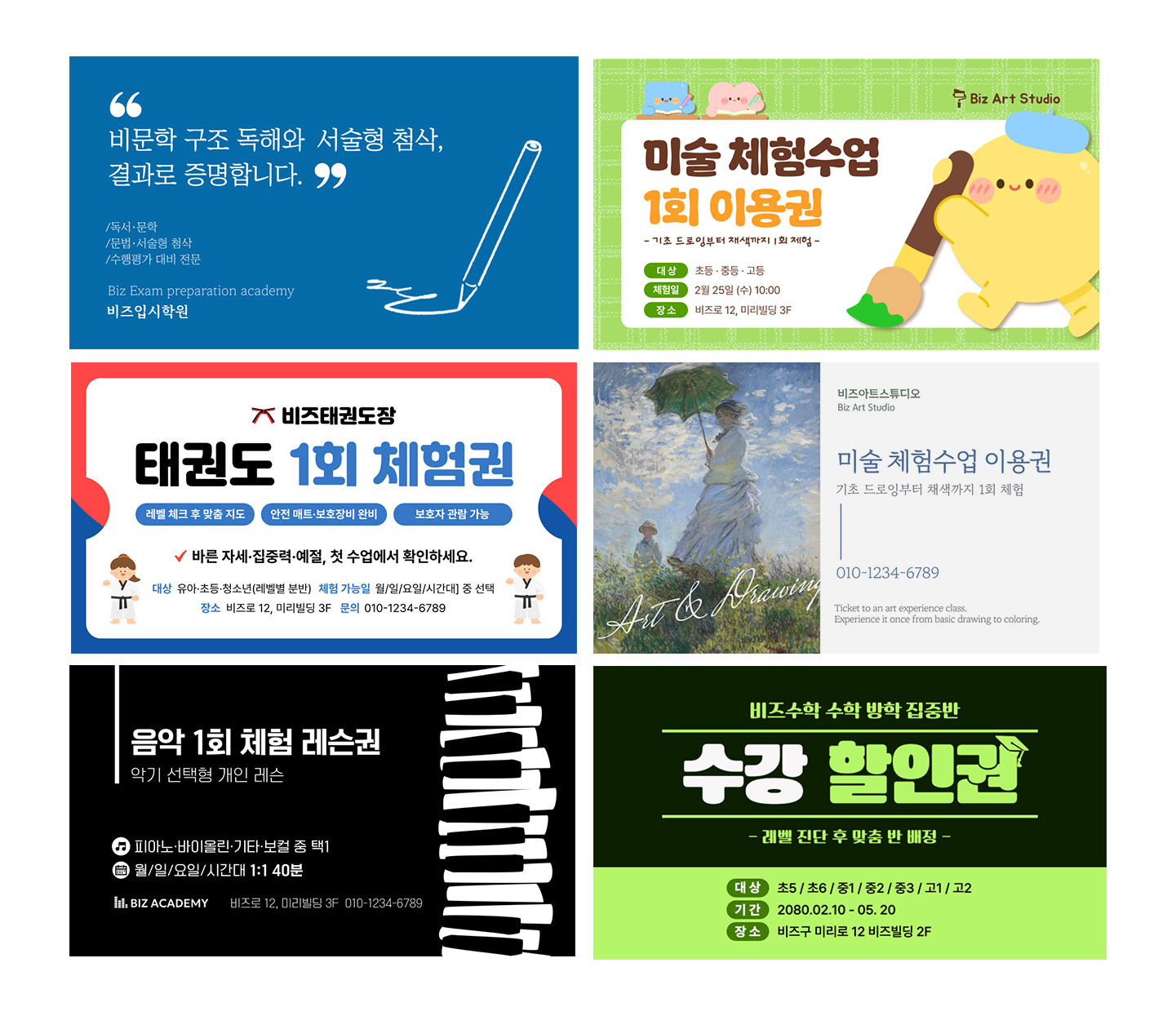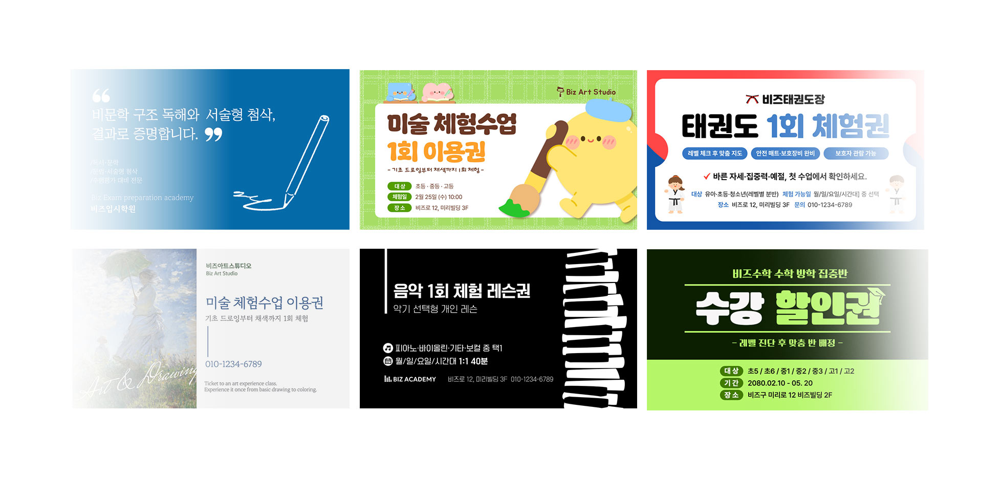 학원 소개부터 강사 프로필, 체험권, 수강 정보까지. ‘상황별 맞춤형’ 명함을 소개합니다.