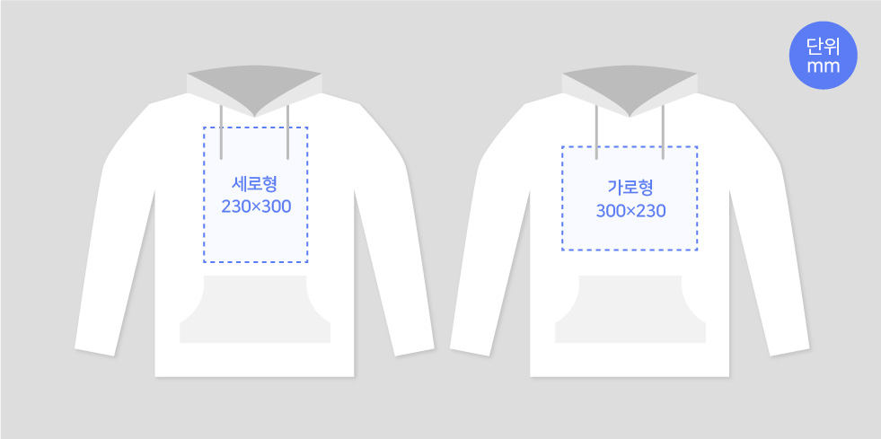 또는 복잡한 디자인도 인쇄 가능한 프리미엄 후드로 주문해보세요. (프리미엄 후드 바로가기)