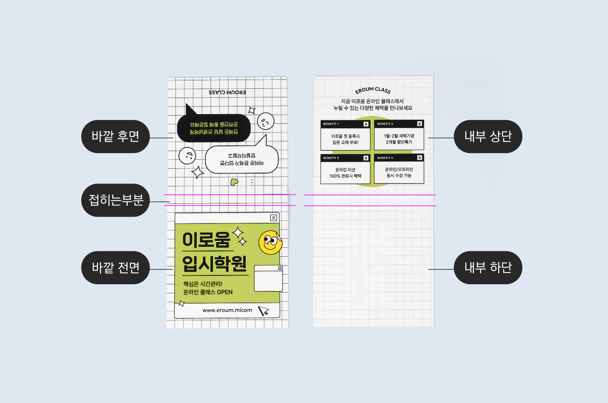내부 하단에는 포스트잇이 위치해 디자인이 가려질 수 있습니다.