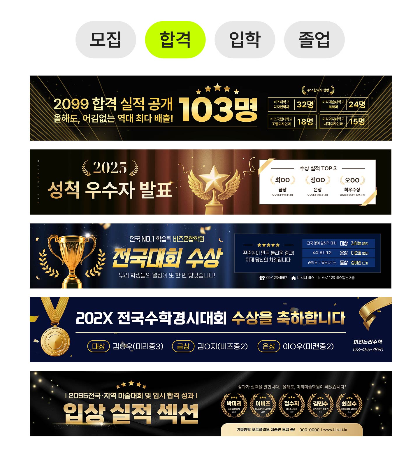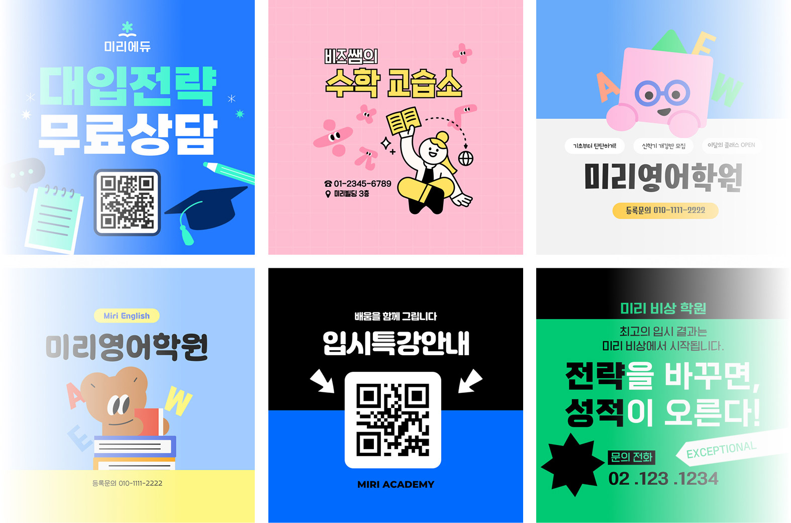 디자인을 몰라도 걱정 마세요. 준비된 템플릿에 학원 이름만 넣으면 바로 사용 가능합니다.