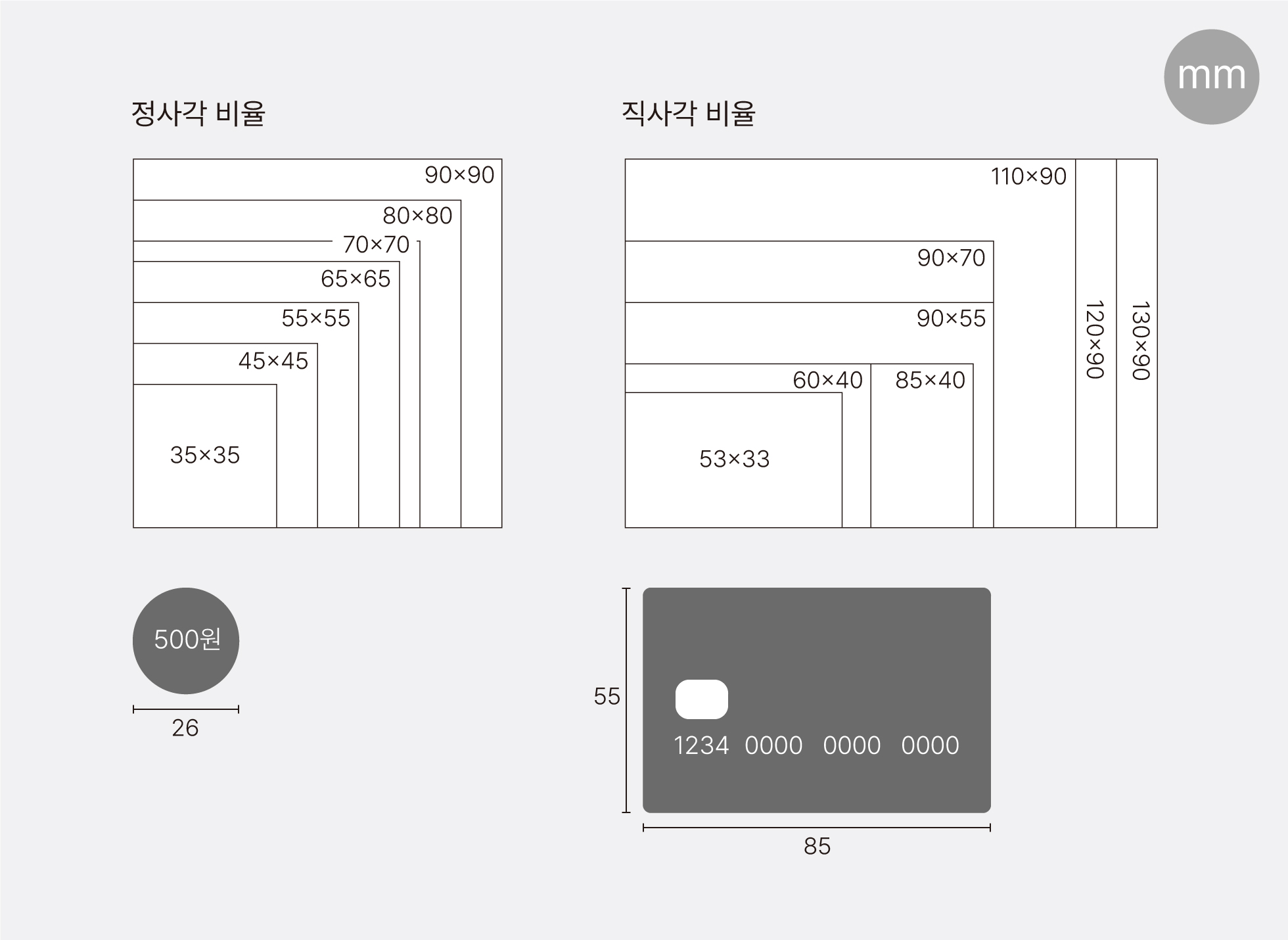 ※ 실제 인쇄물은 재단 과정에서 1~2mm 사이즈 오차가 발생할 수 있습니다.