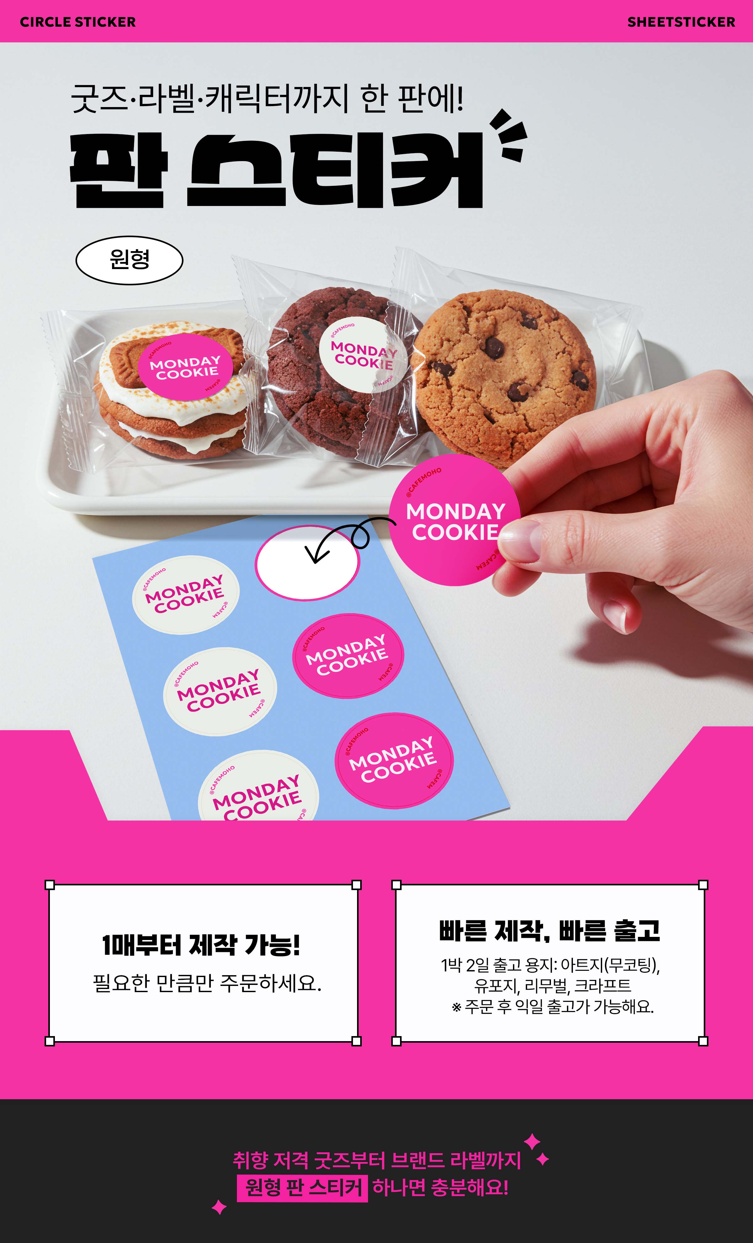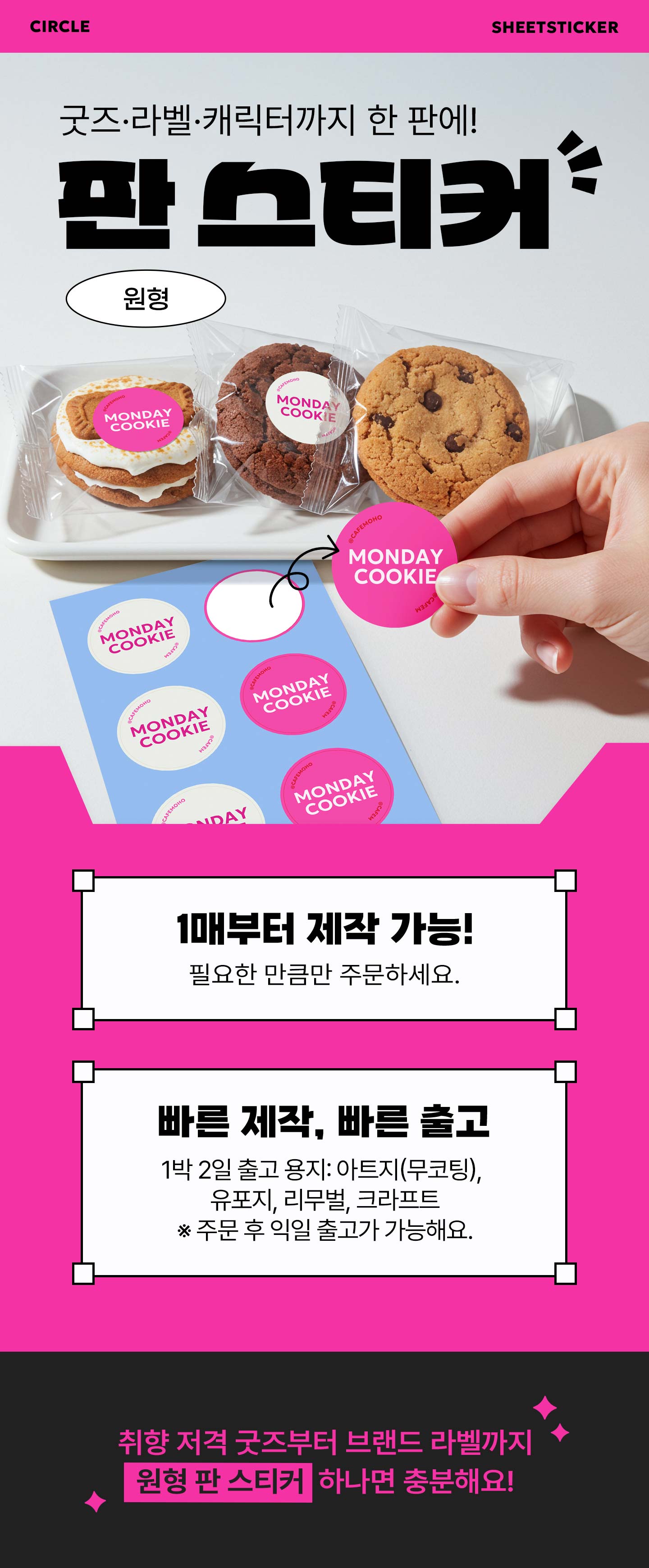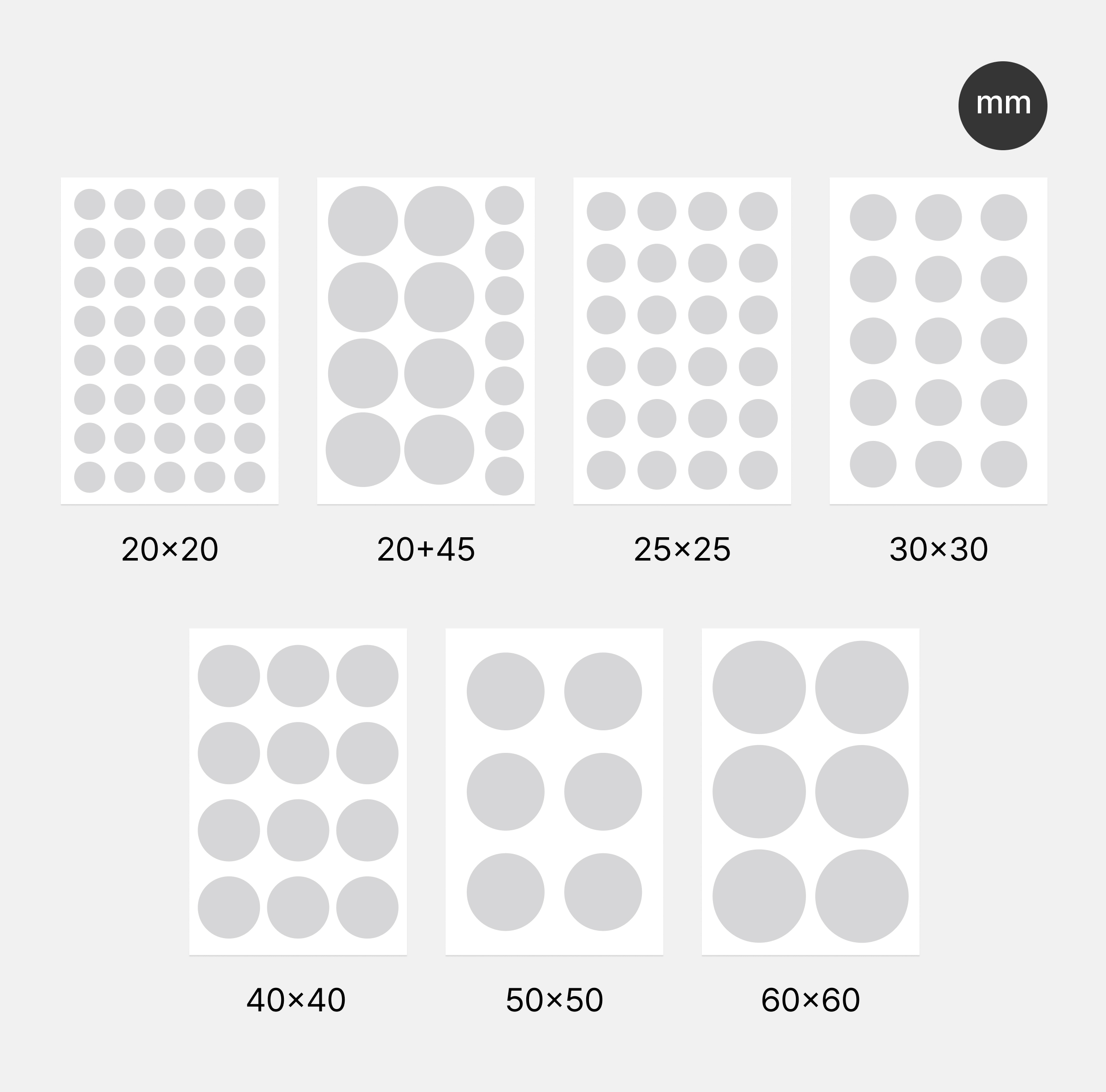 원형 판스티커 사이즈는 7종류로 구성되어있어요.