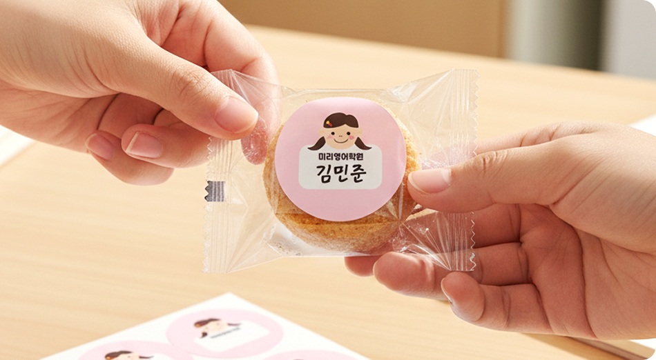 노트, 파일, 간식 봉투 어디에 붙여도 부담 없는