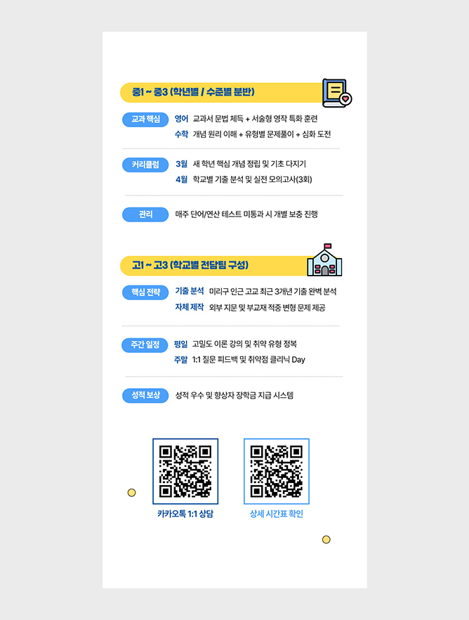 학원만의 체계적인 관리 시스템과 혜택을 강조합니다.