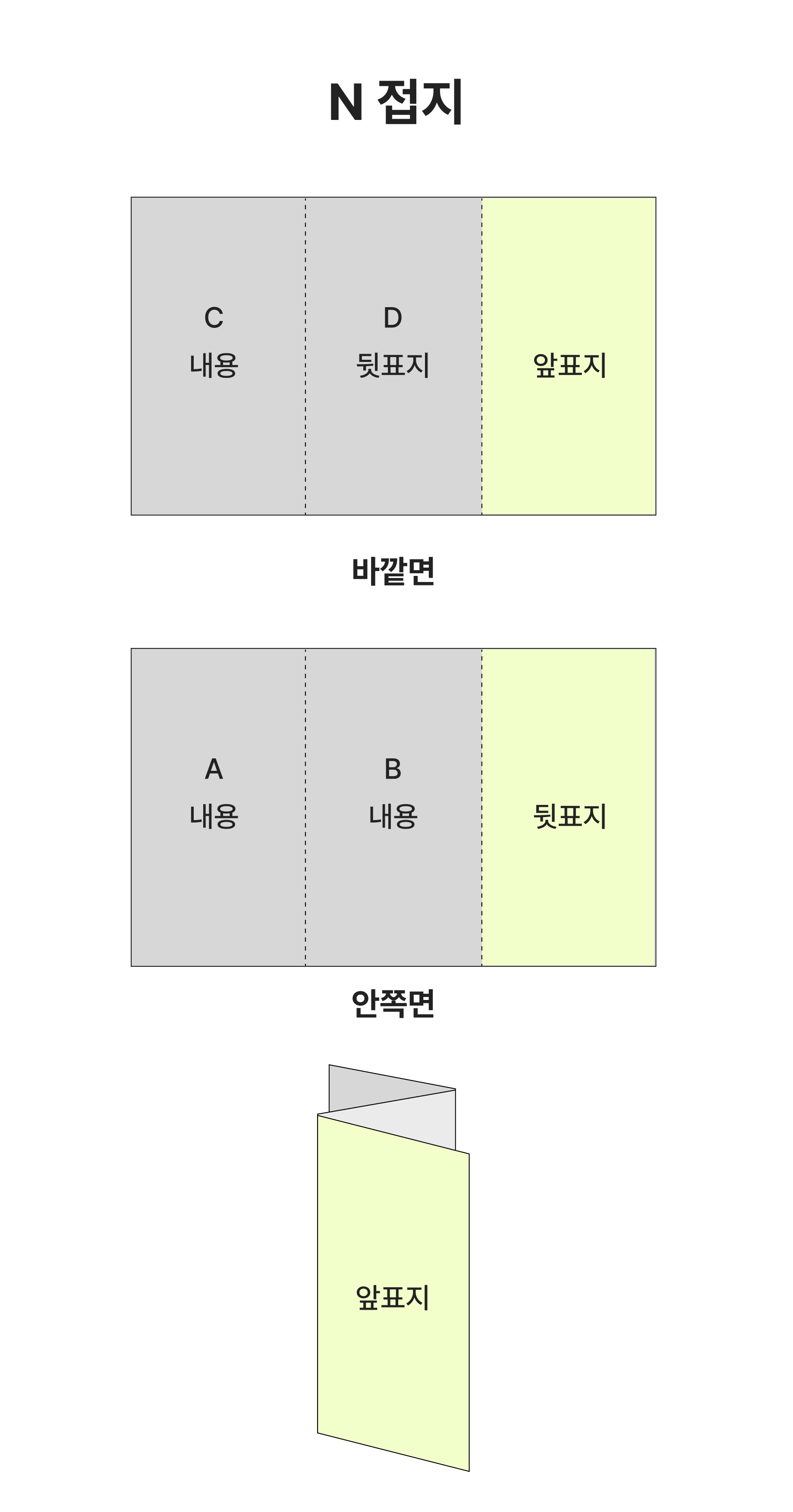 접지에 따라 디자인시 페이지 순서에 주의하세요. (제작 공정 상, 접지 부분에 맞게 디자인해도 밀림 현상이 있을 수 있습니다.)