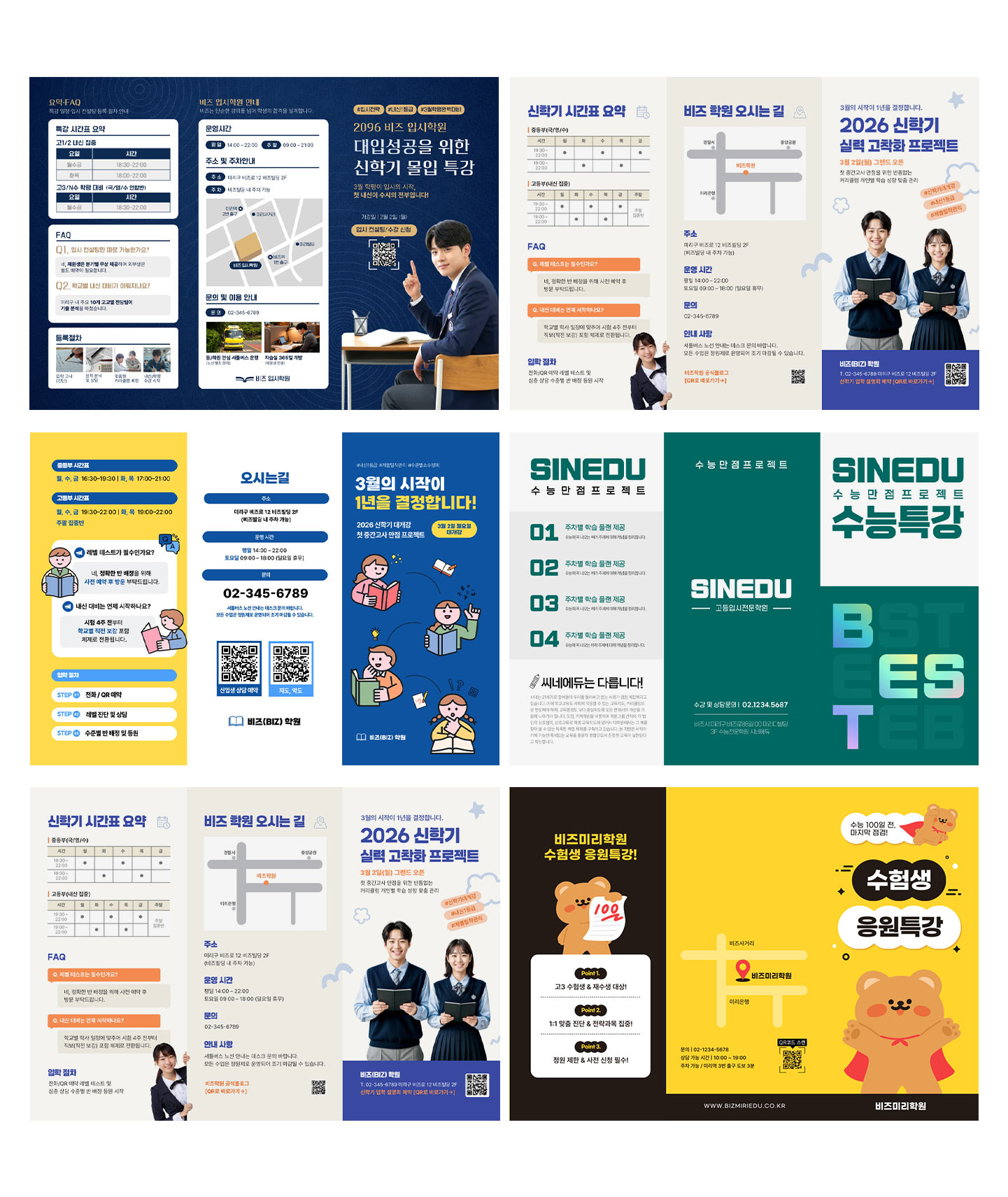 총 4면 구성으로 학원의 정체성과 핵심 정보만 간결하게 전달하고 싶을 때 최고의 선택입니다.