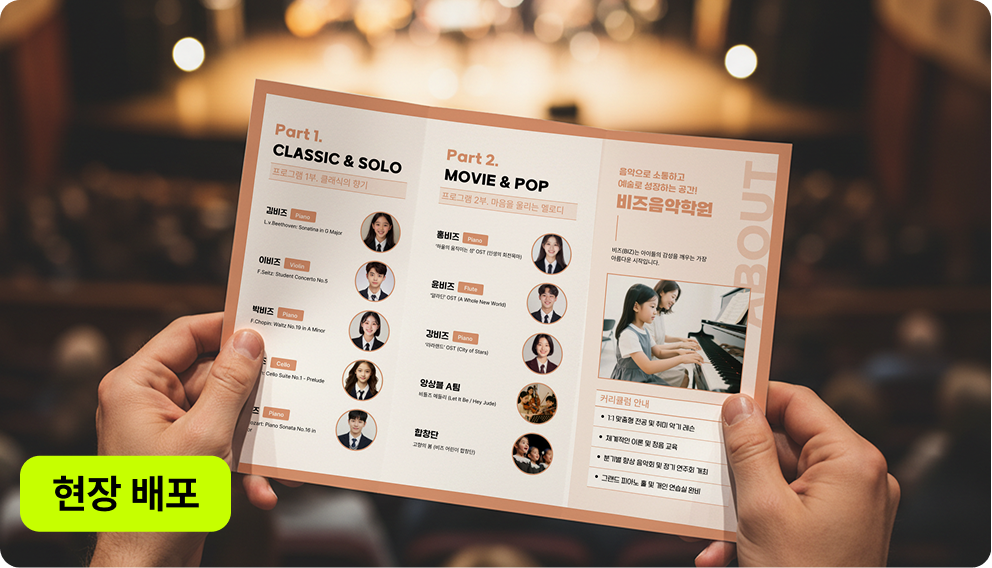 디자인 하기 수월했어요. 인쇄 품질도 선명하고 종이 질감이 고급스러워, 공연장의 분위기를 한층 살려주는 만족스러운 결과물인 것 같아요.