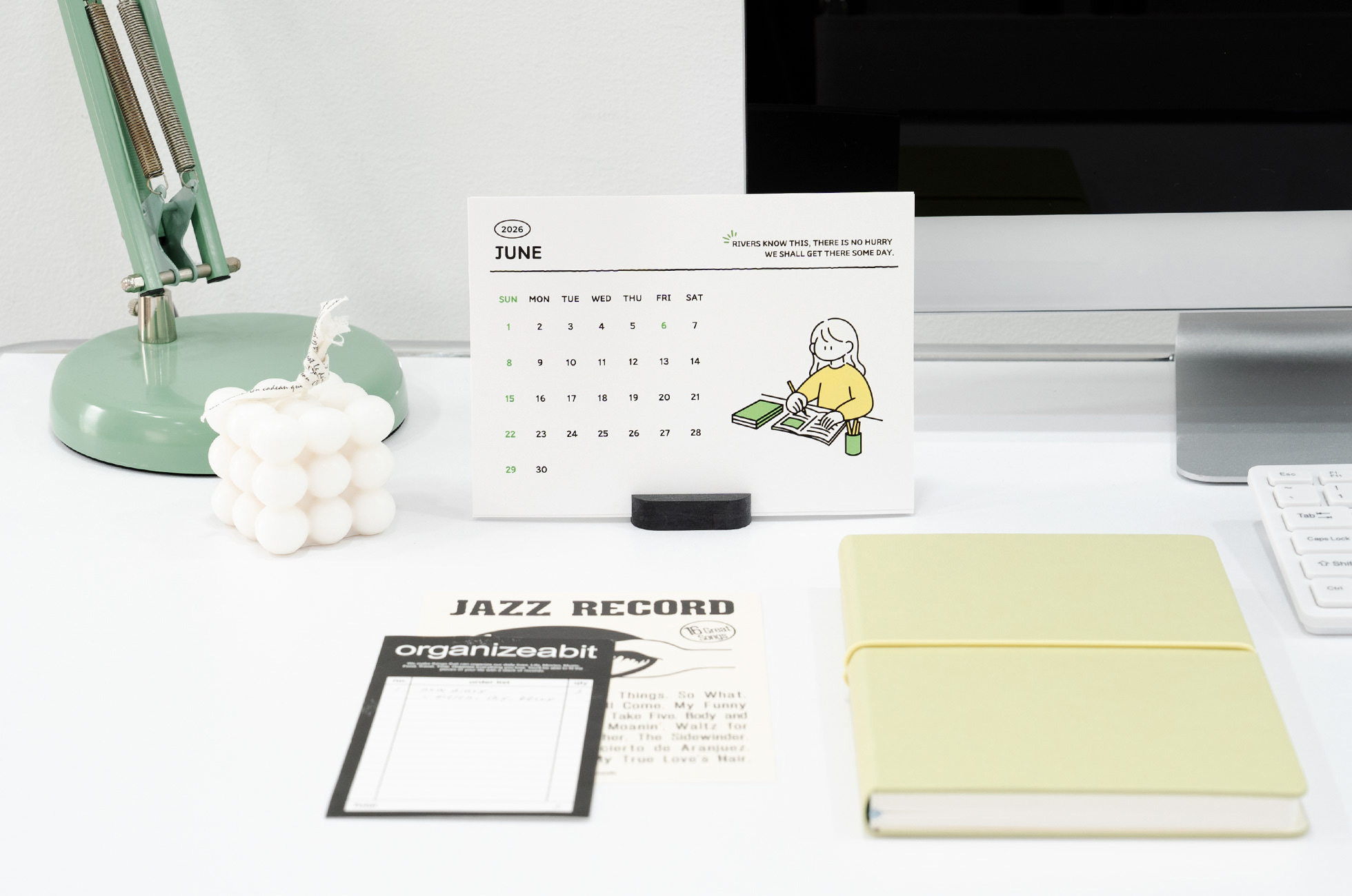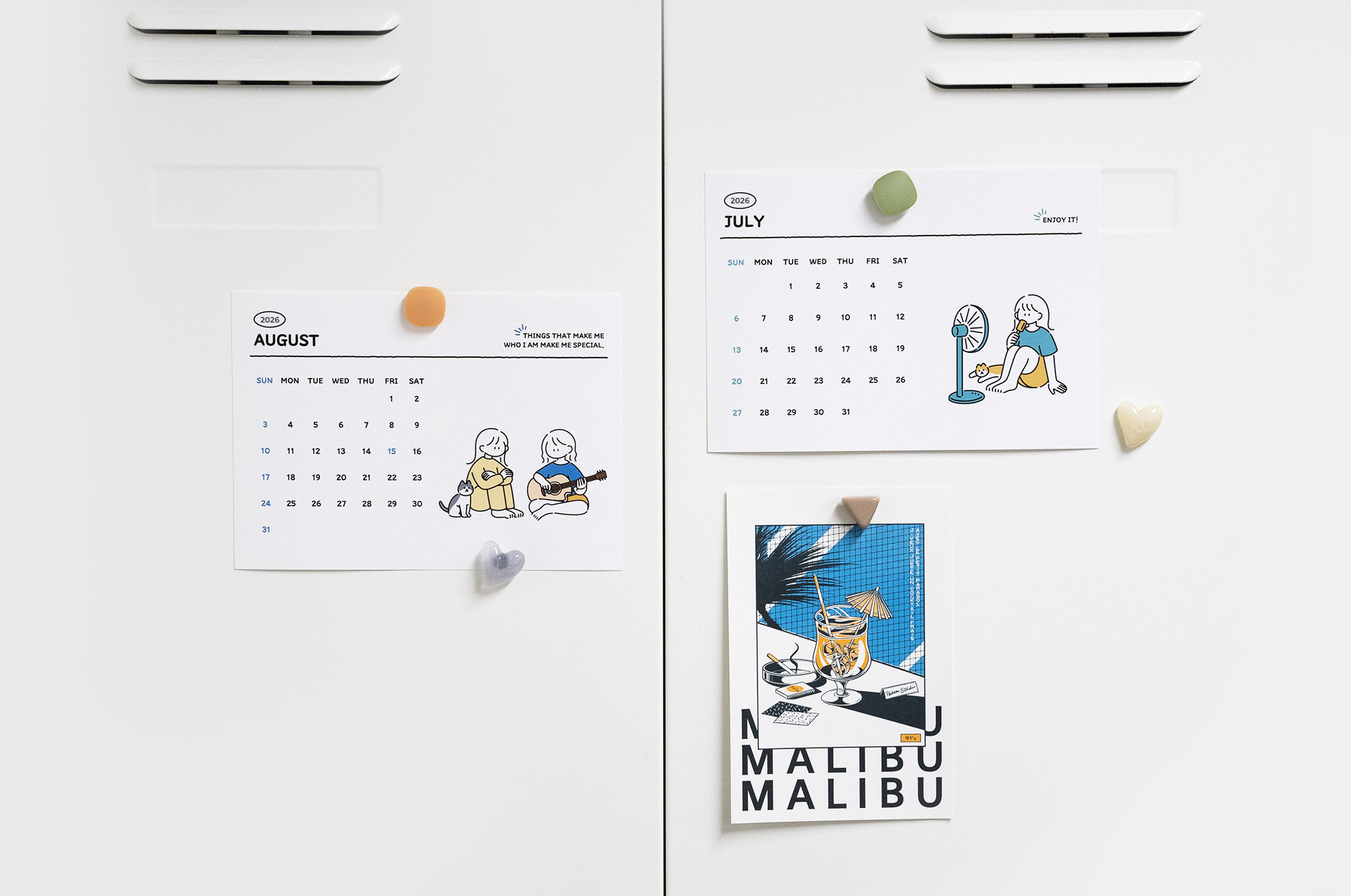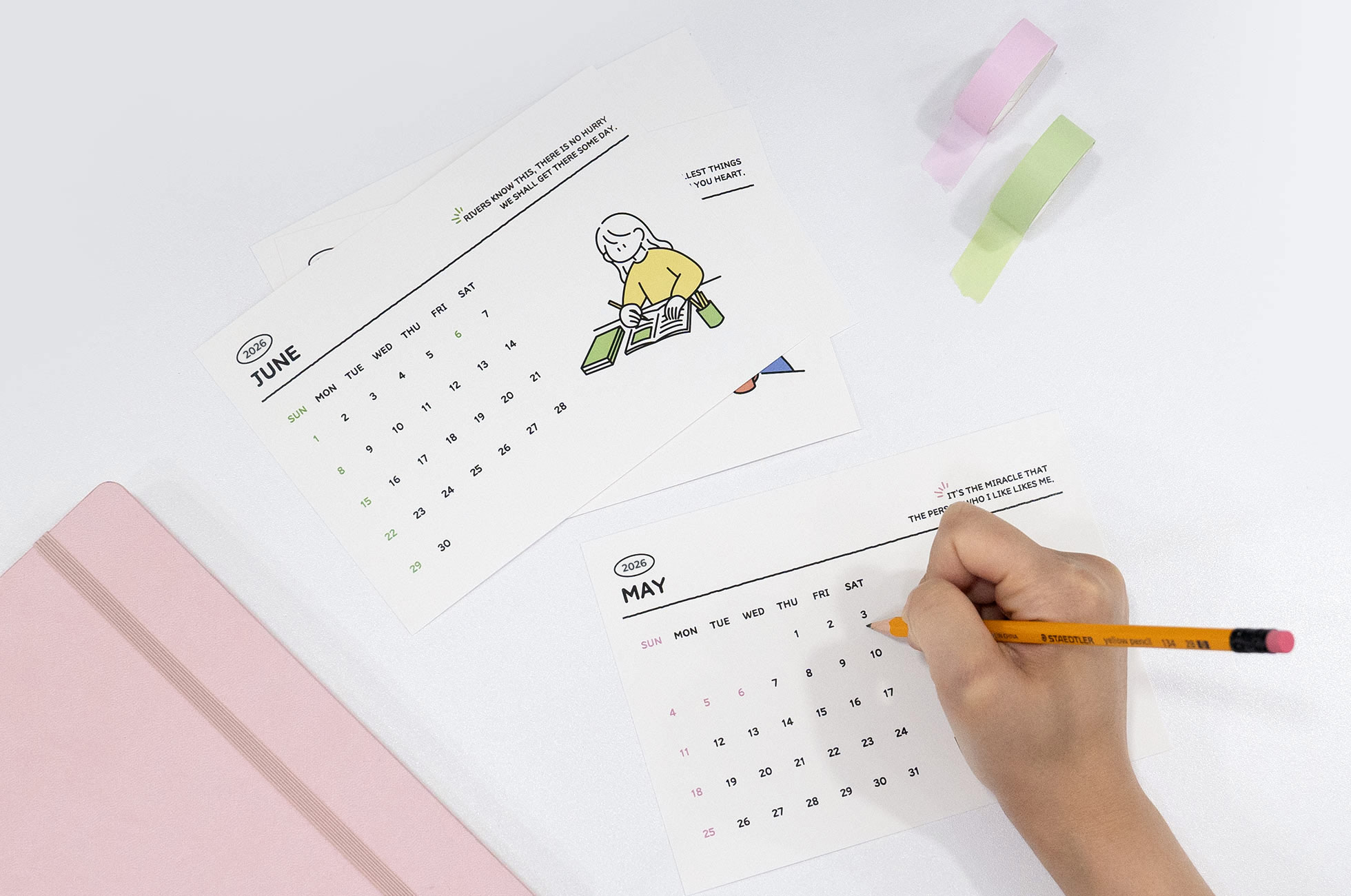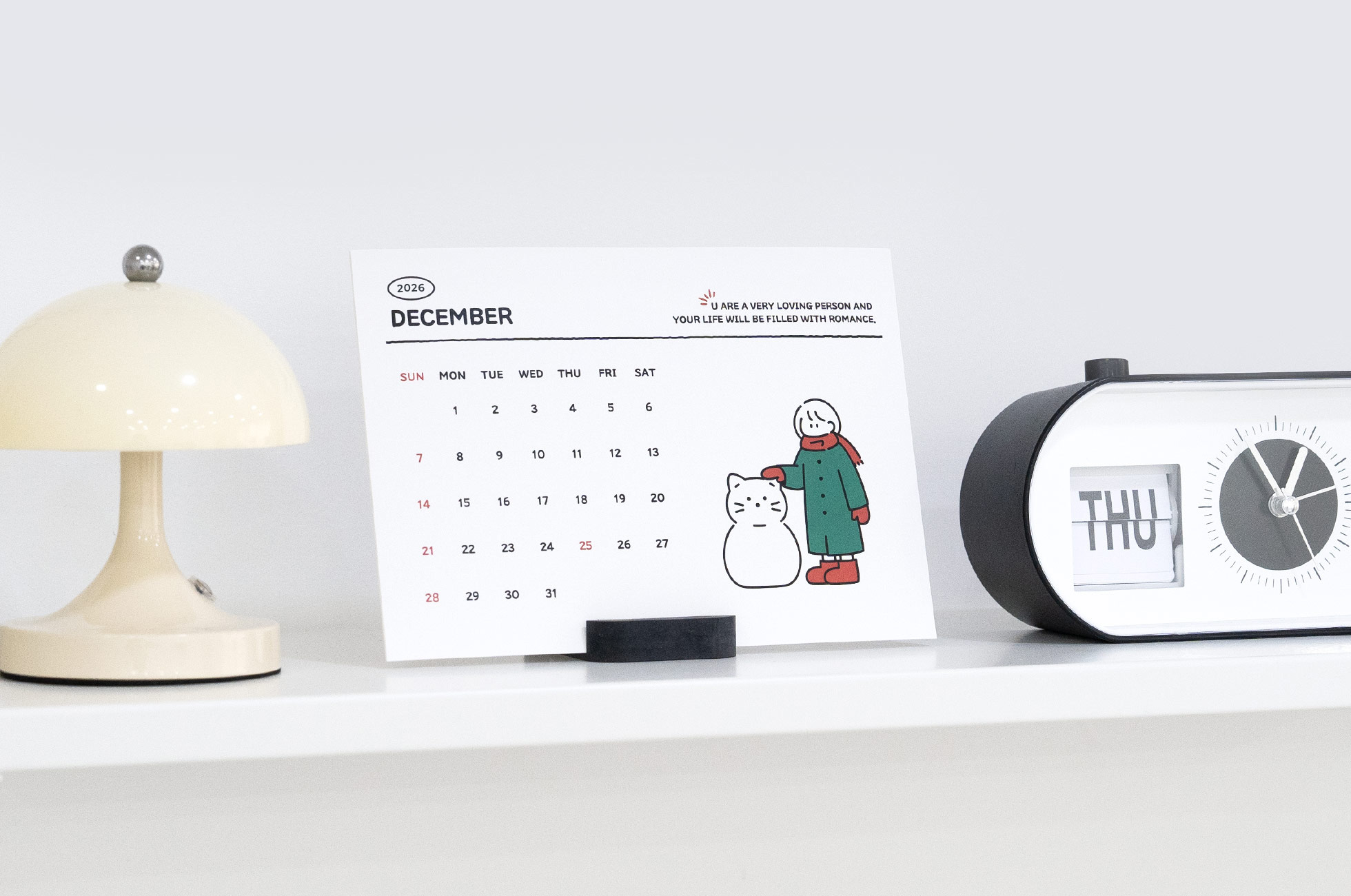 테이블 위 딱 좋은 엽서 사이즈로 달력을 만들어보세요.