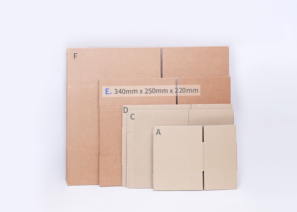 E. 340mm x 250mm x 210mm 사이즈부터는 사용되는 용지가 달라 박스가 약간 붉은 빛을 띕니다.