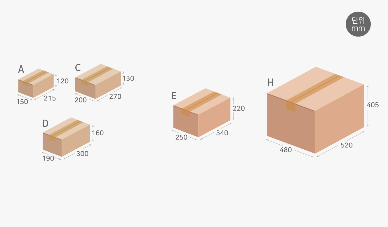 상품의 크기, 종류에 따라 박스 사이즈를 선택하세요.