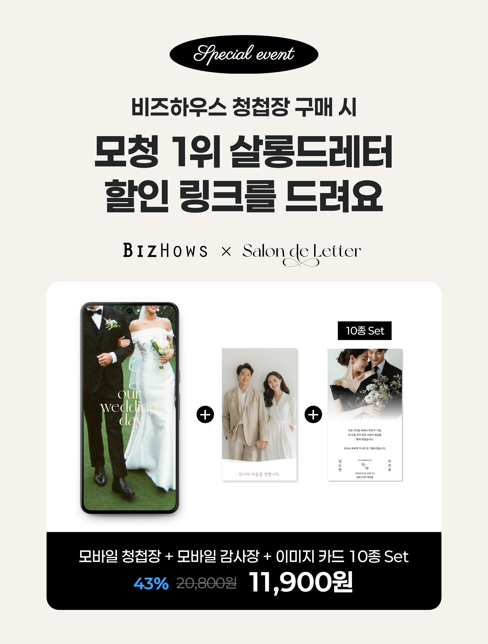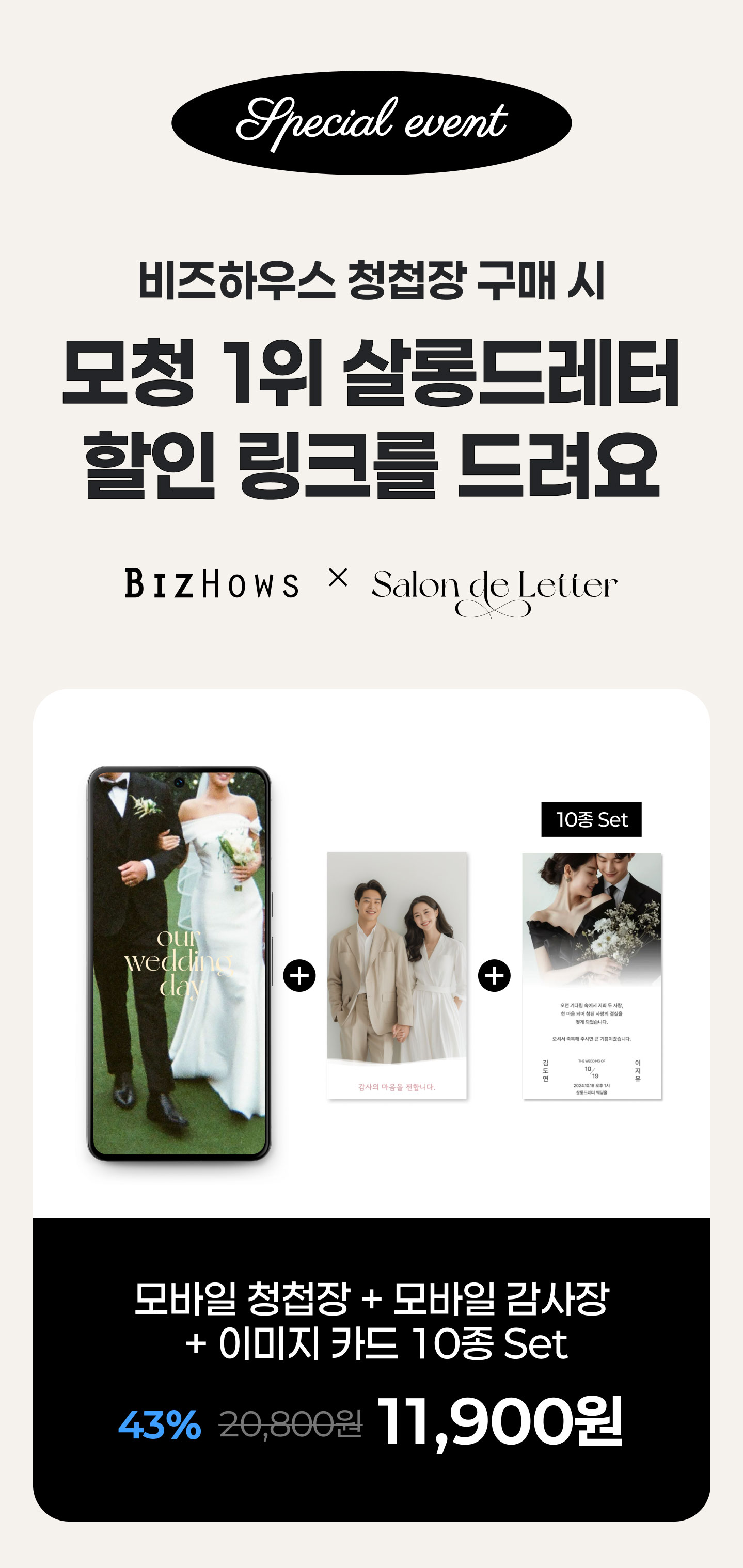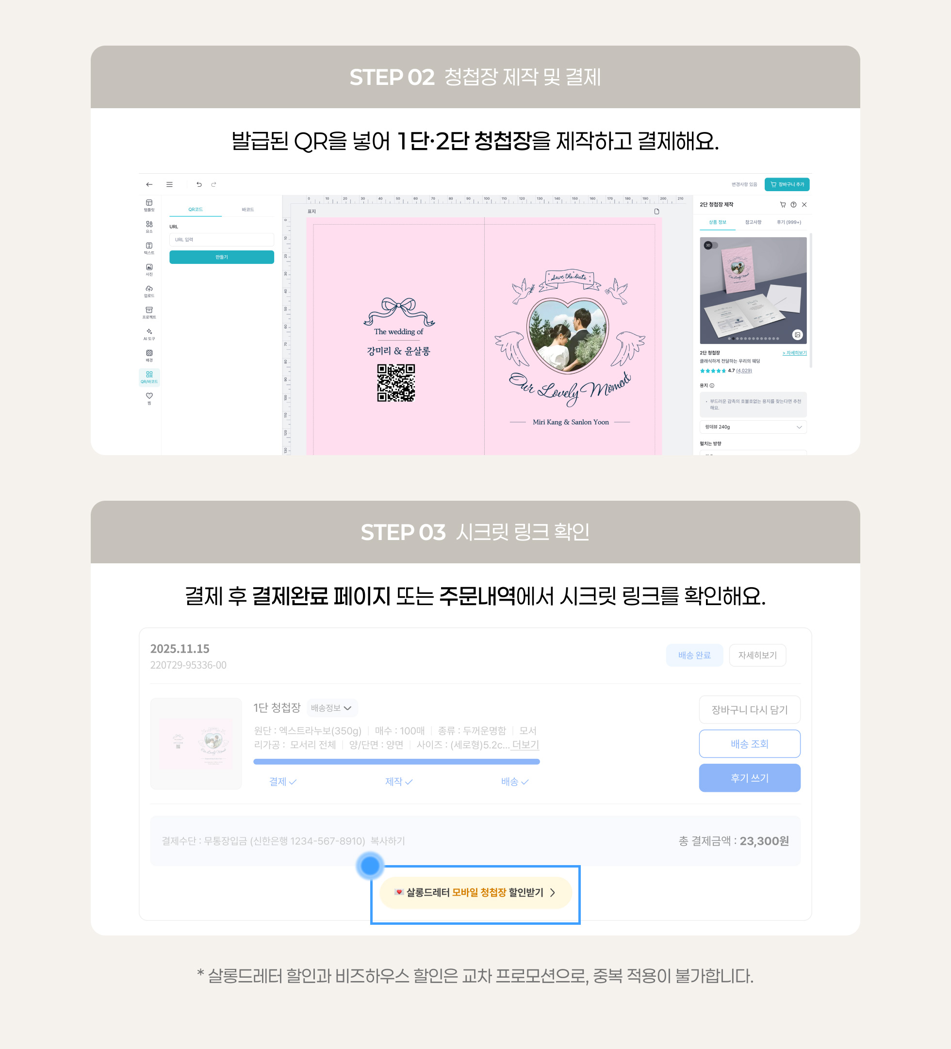 청첩장과 봉투, 따로 주문할 필요 없이 한 번에 주문해 보세요.