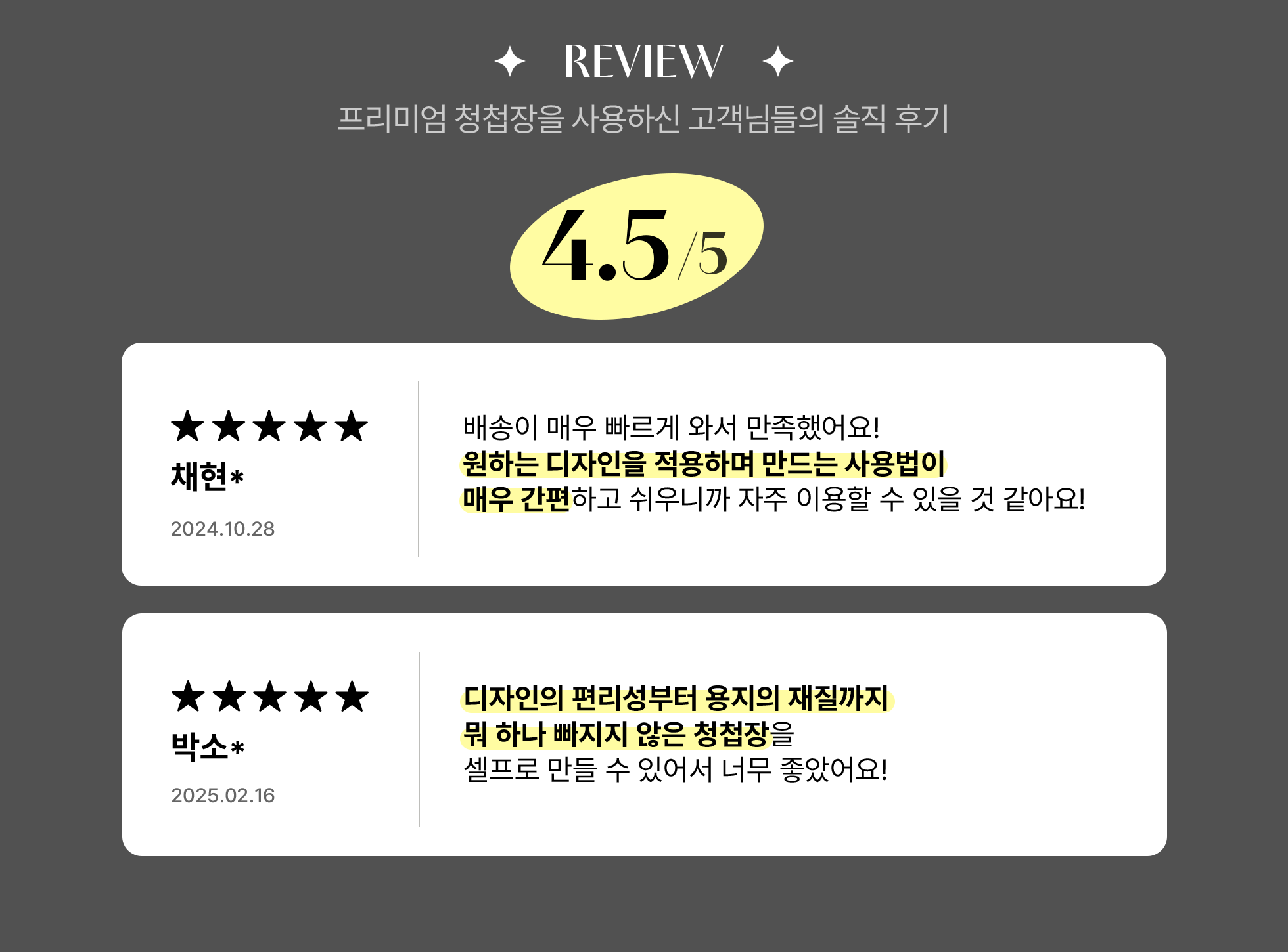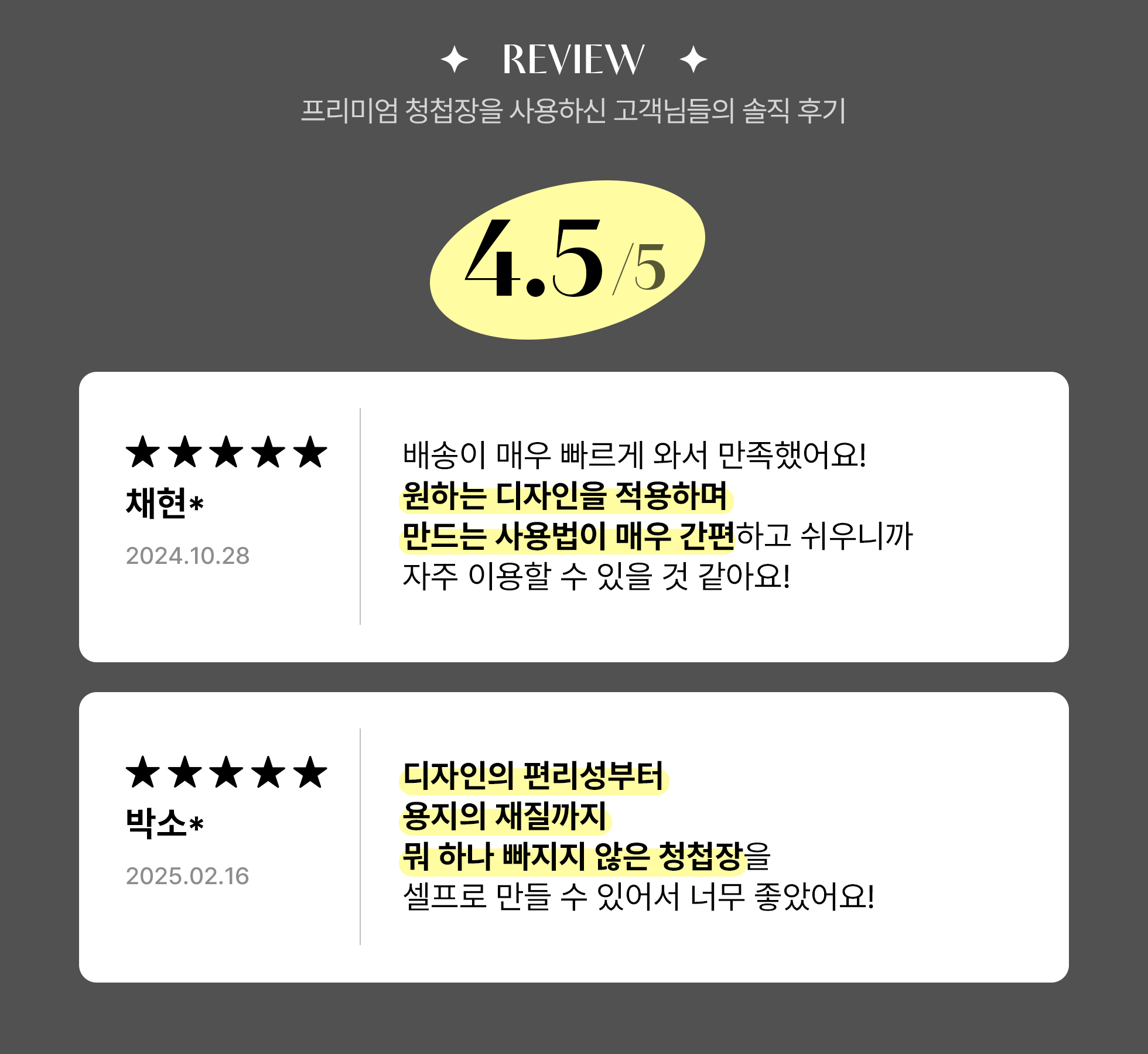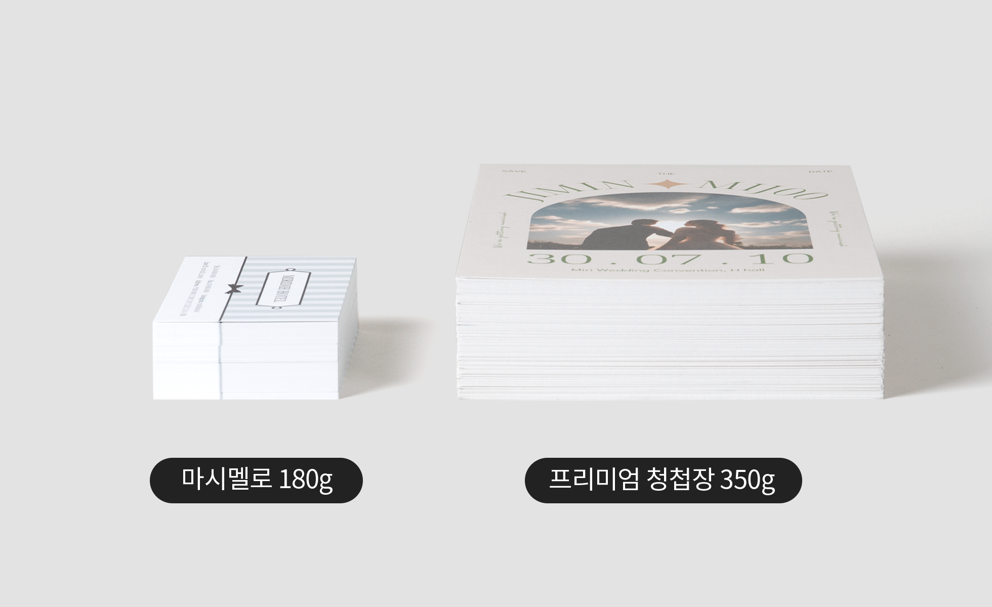 프리미엄 청첩장만의 두께와 내구성을 확인해 보세요!