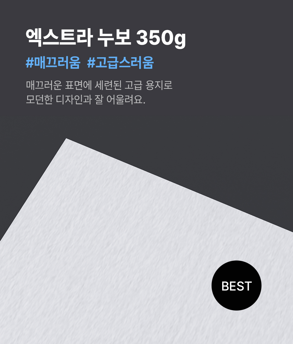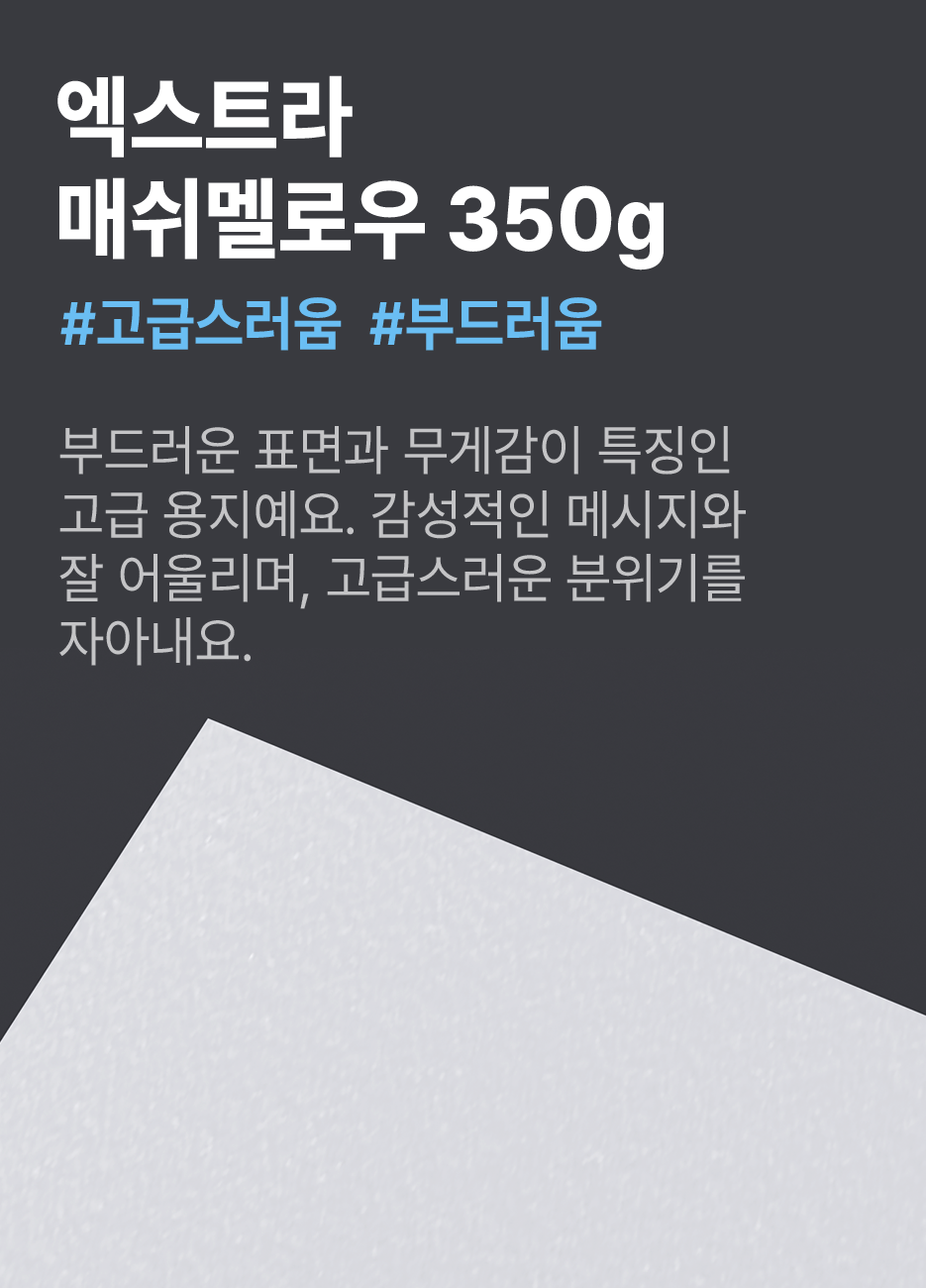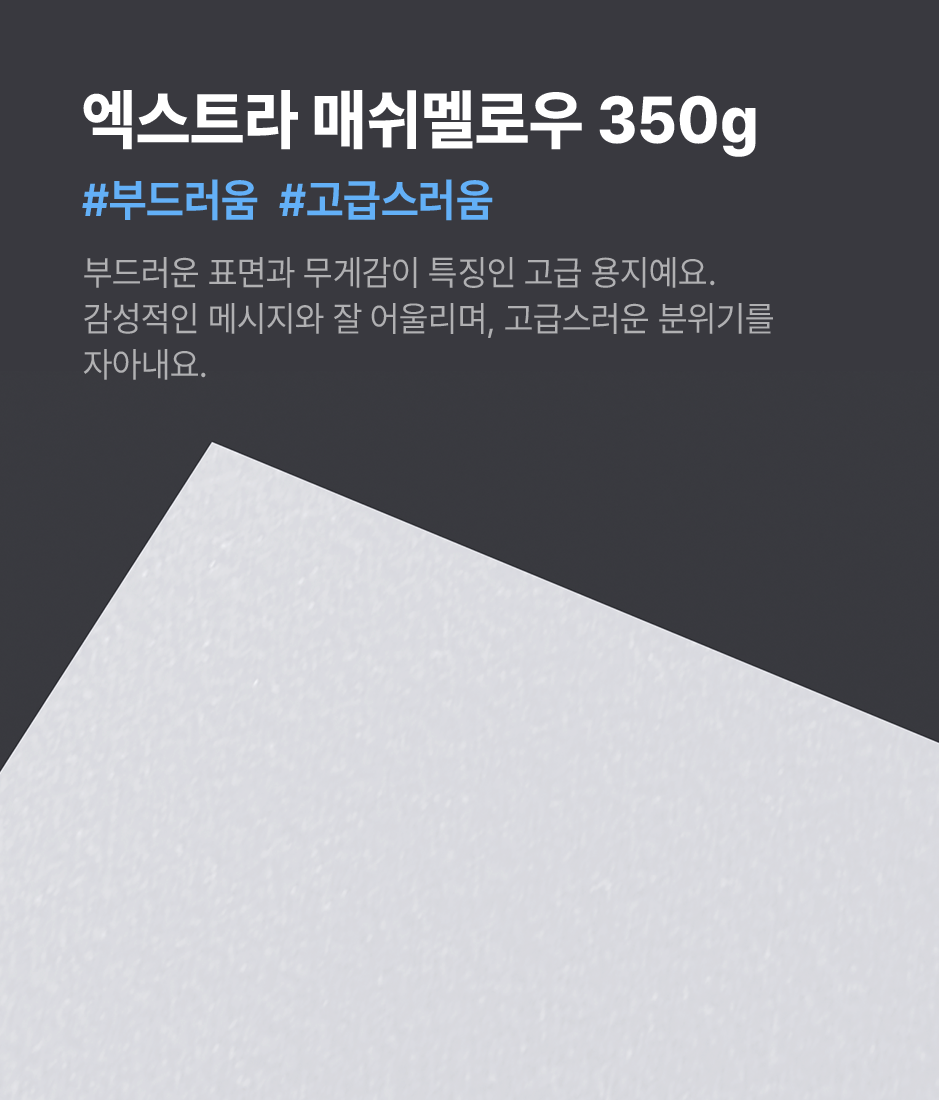 청첩장으로 많이 제작하는 용지를 추천해 드려요.