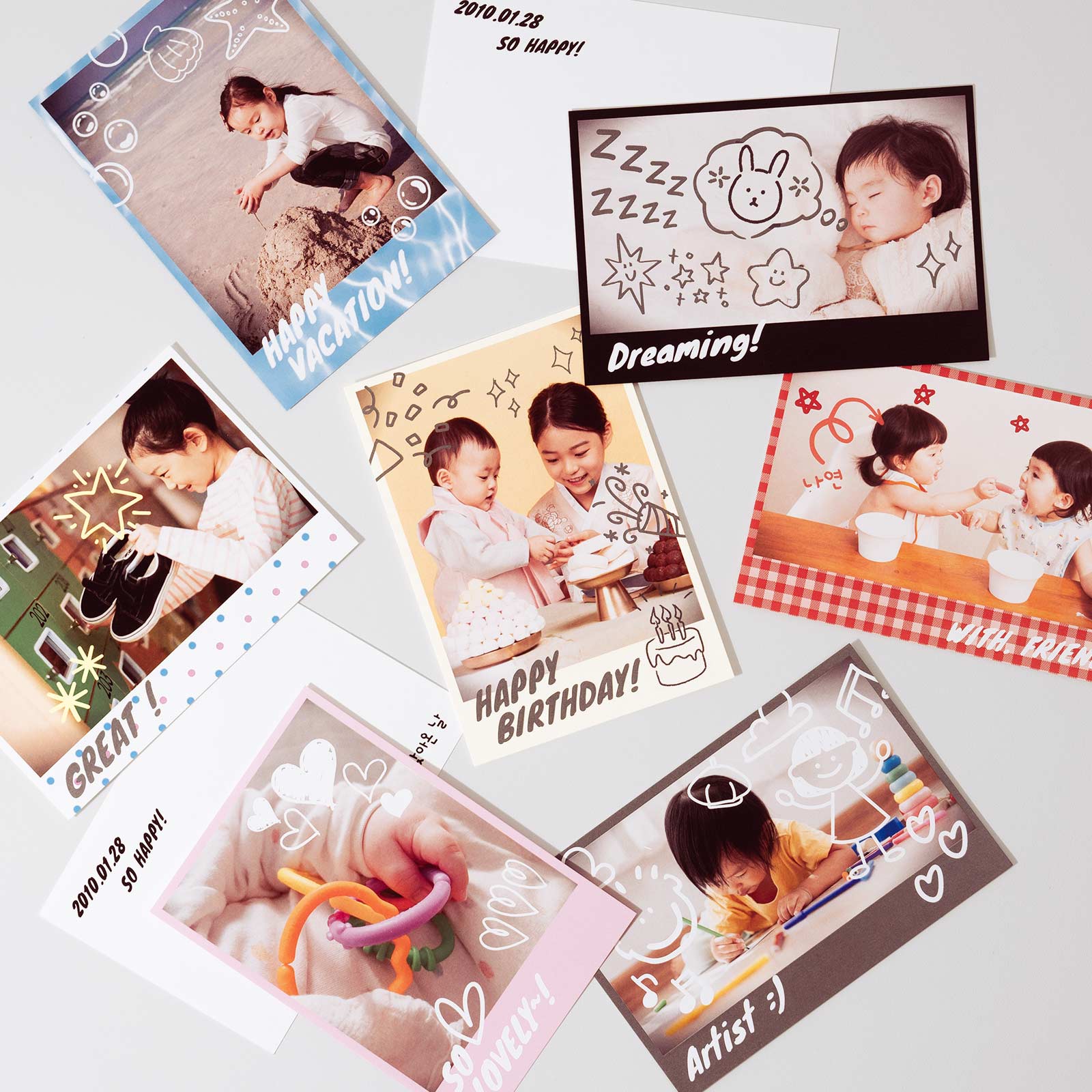 우리 브랜드만의, 나만의 엽서 세트를 만들어 보세요.